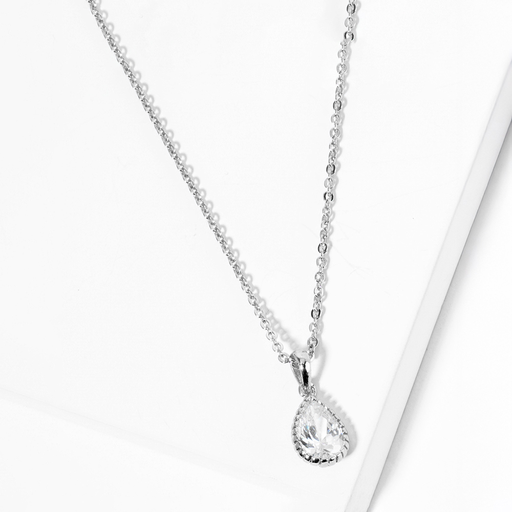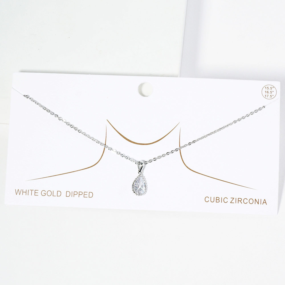 Gold Dipped Teardrop CZ Stone Pendant Necklace