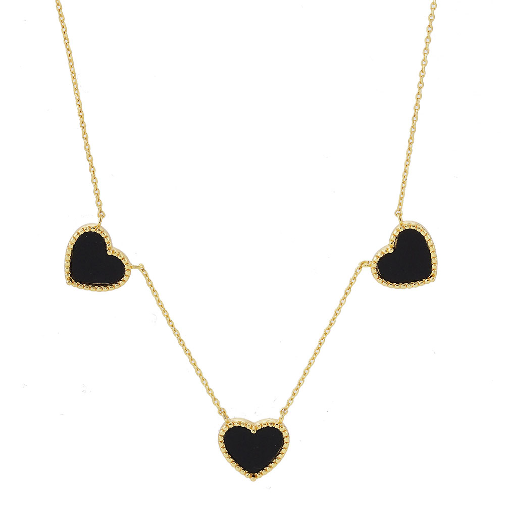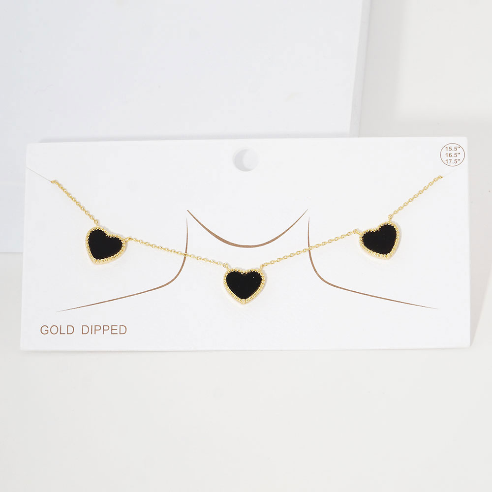 Heart Stone Pointed Pendant Two Tone Textured Metal Link Toggle Necklace
