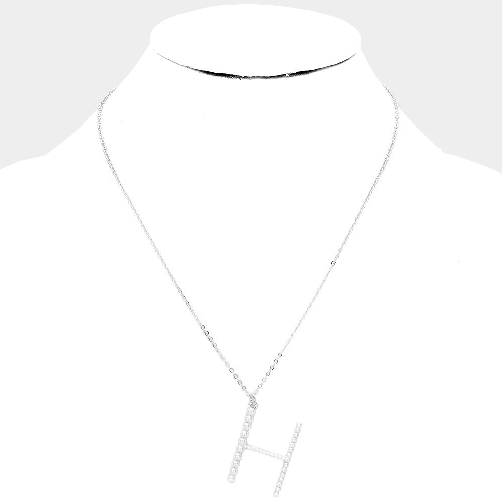 H - Pearl Statement Initial Monogram Pendant Necklace