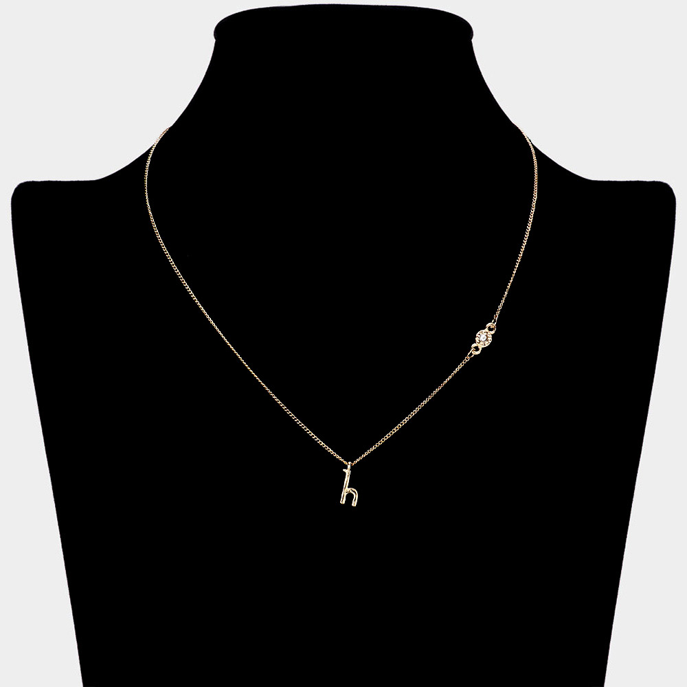 -H- Rhinestone Initial Monogram Pendant Brass Chain Necklace