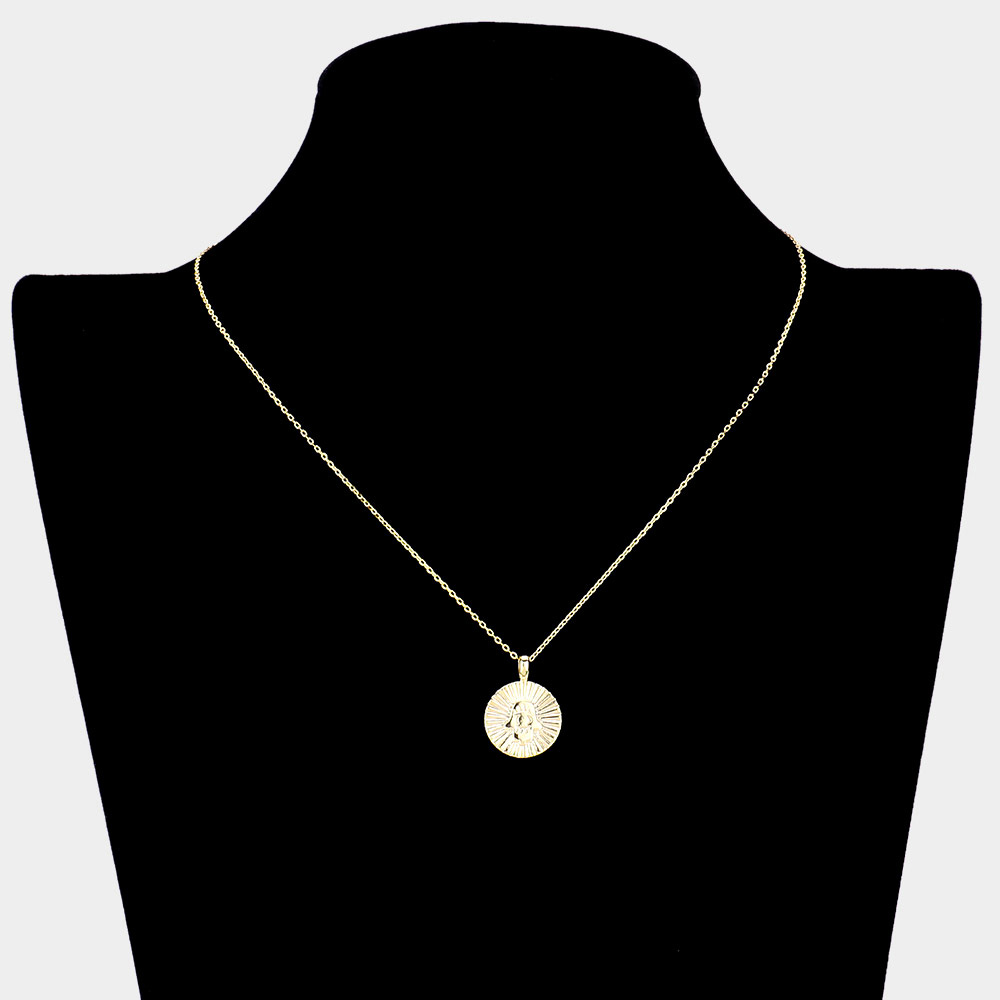 Evil Eye Accented Textured Brass Metal Round Pendant Necklace