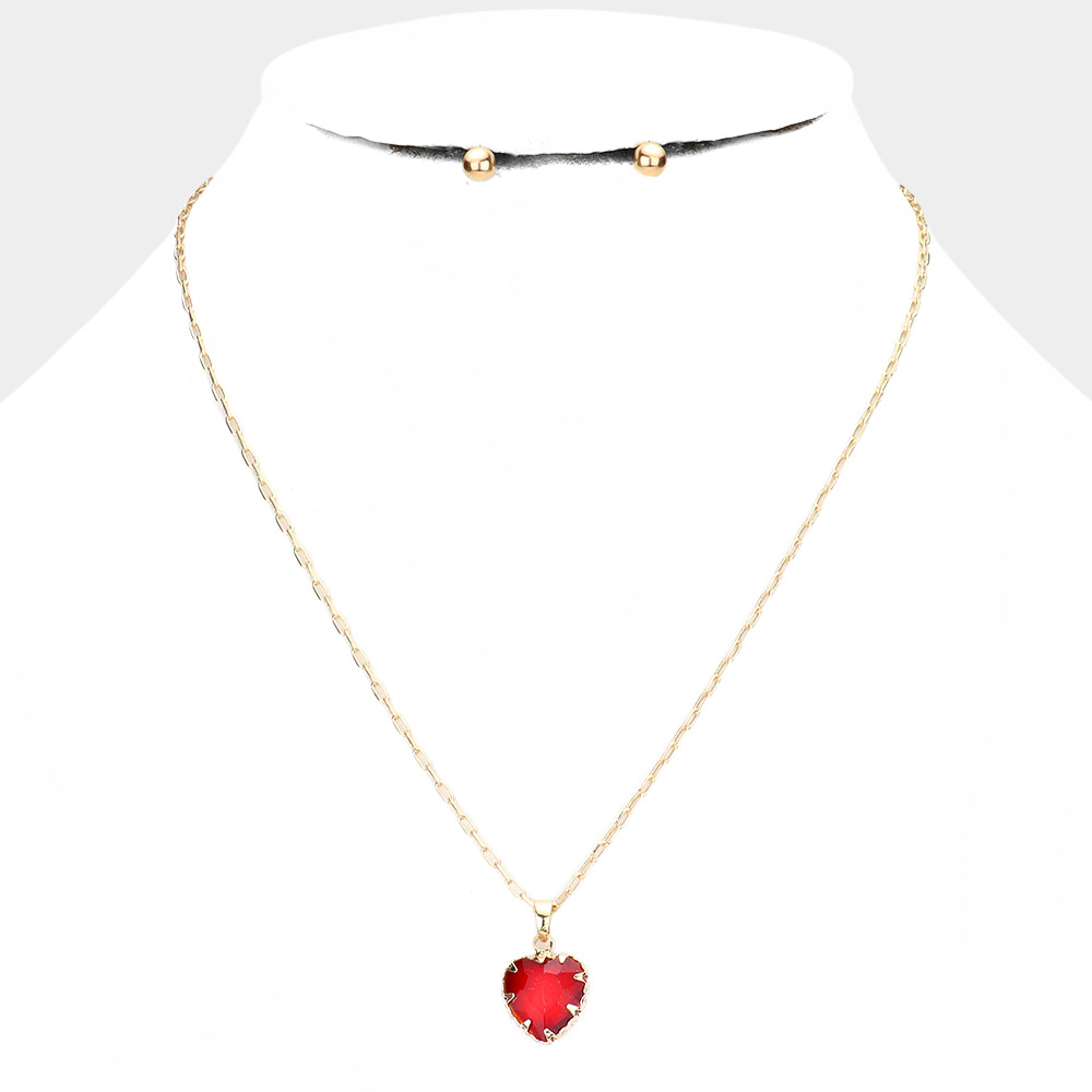 Gold Dipped Puffy Heart Charm Fabric Scarf Necklace / Adjustable Bracelet / Bag Charm