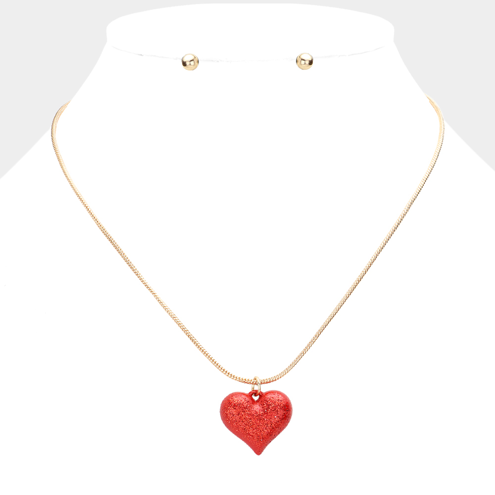 Gold Dipped Double Heart Pendant Bubble Chain Necklace