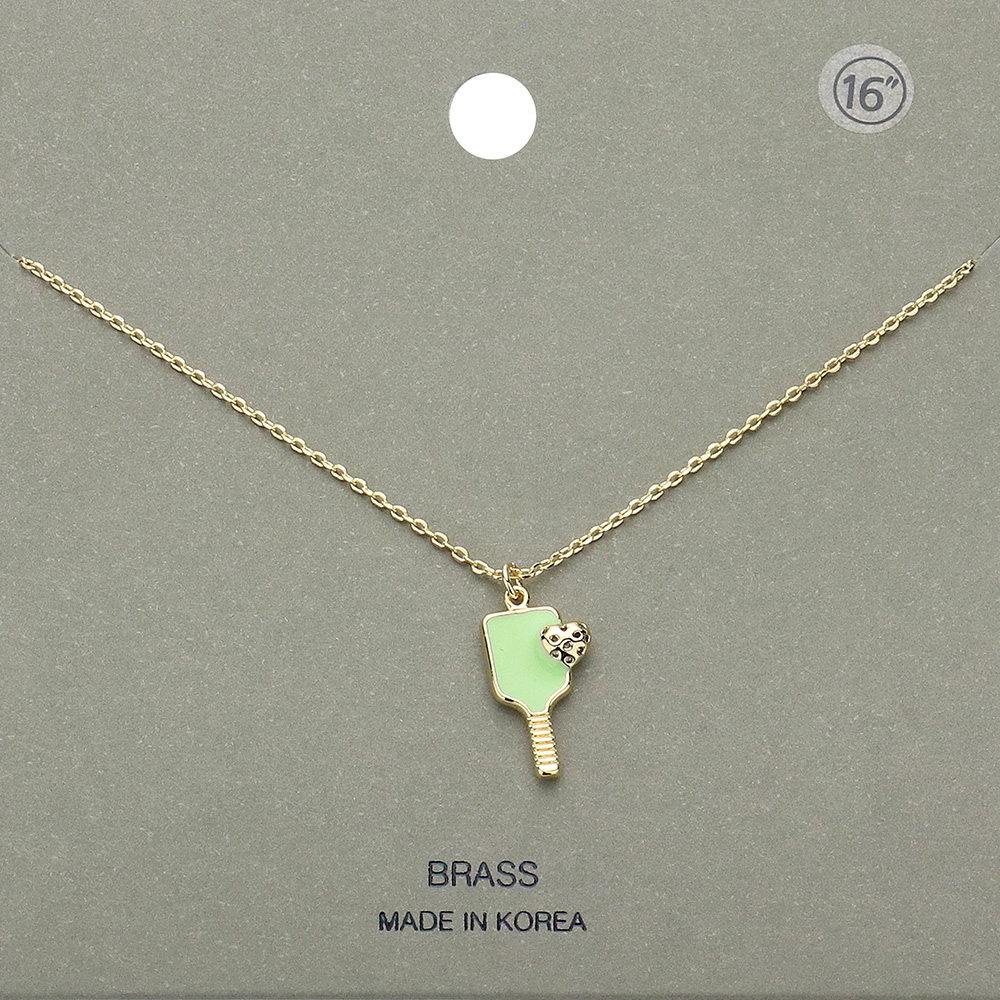 Heart Pointed Enamel Pickleball Pendant Necklace