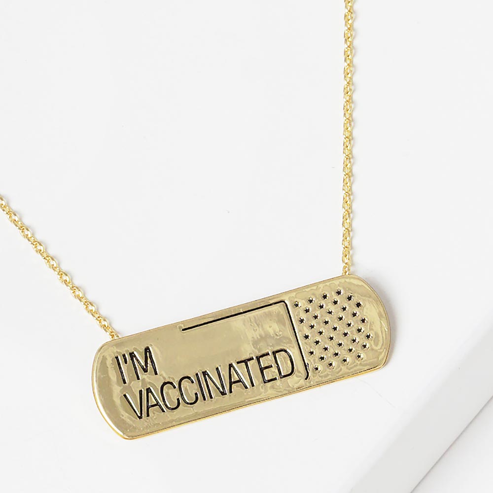 I AM VACCINATED Gold Dipped Bandage Message Pendant Necklace