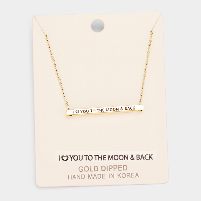 'I Love You To the...' Horizontal Metal Bar Pendant Necklace
