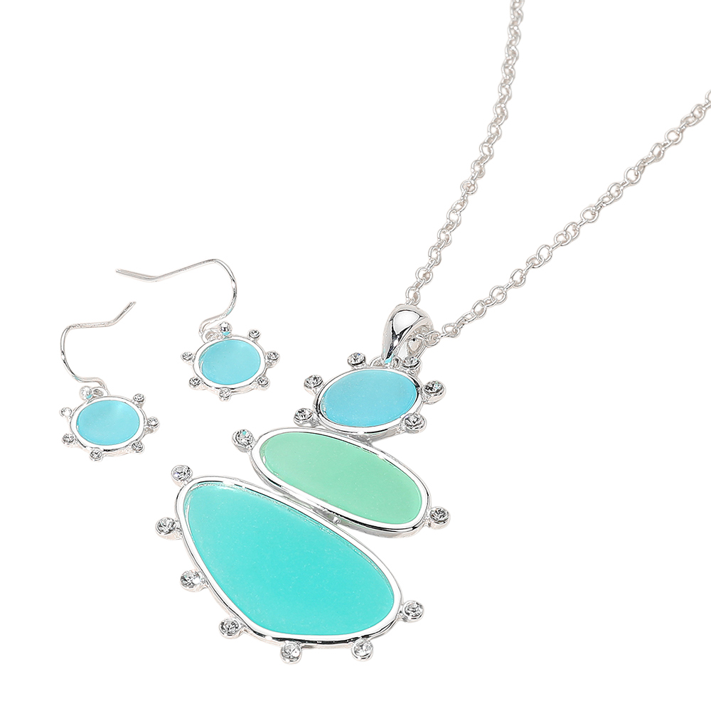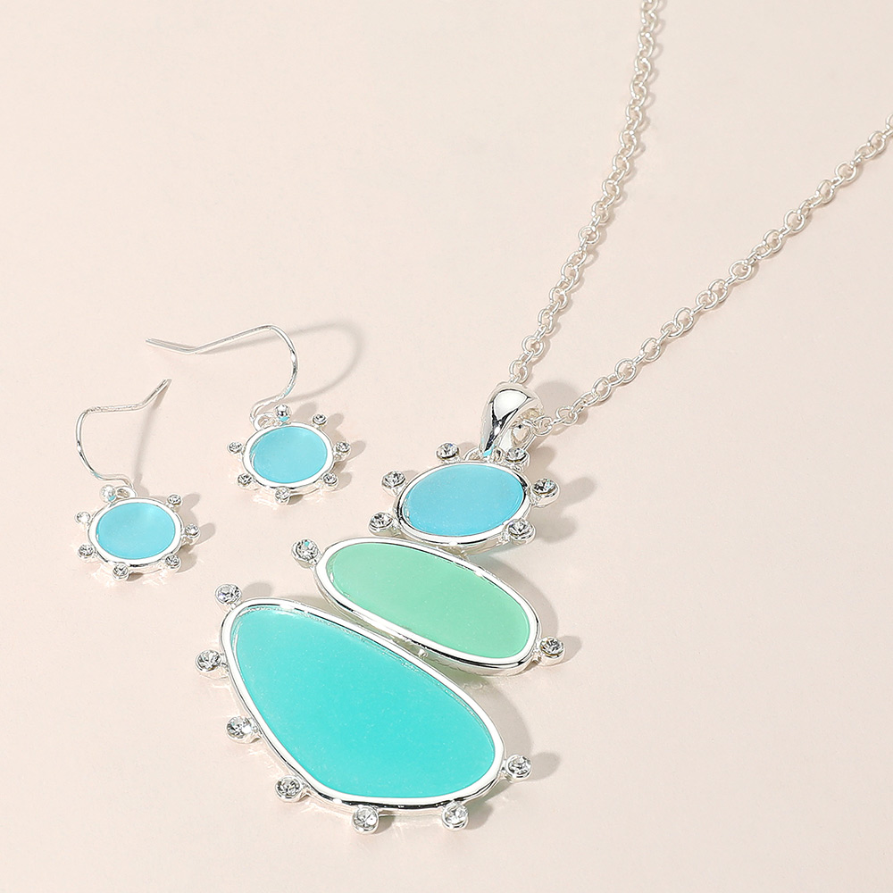 Details • Necklace Size : 18" + 3" L • Pendant Size : 1.6" X 2.4" • Earrings Size : 1" L • A bold geometric pendant necklace paired with coordinating earrings, crafted with smooth shapes and contemporary flair. This striking set makes a statement of confidence and style, ideal for both casual looks and special occasions. • Lead and Nickel Compliant