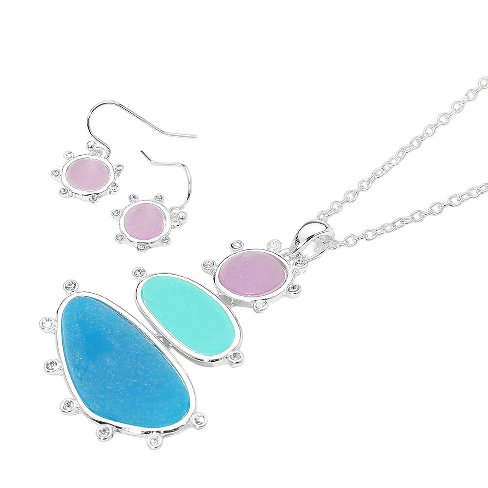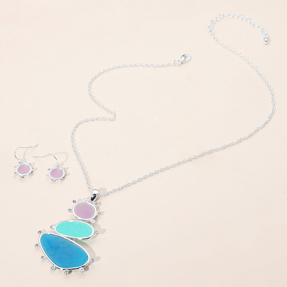Details • Necklace Size : 18" + 3" L • Pendant Size : 1.6" X 2.4" • Earrings Size : 1" L • A bold geometric pendant necklace paired with coordinating earrings, crafted with smooth shapes and contemporary flair. This striking set makes a statement of confidence and style, ideal for both casual looks and special occasions. • Lead and Nickel Compliant