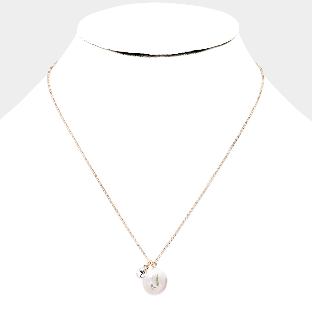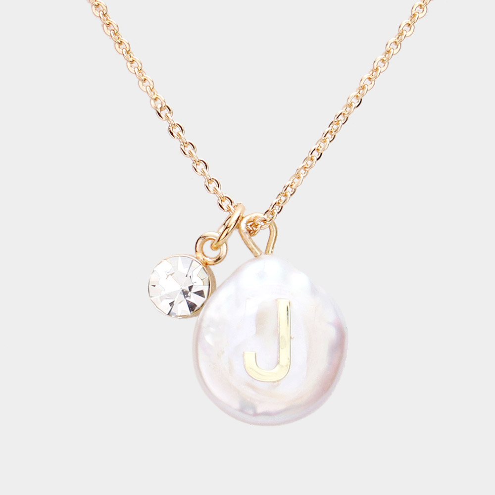 J - Freshwater Pearl Initial Monogram Pendant Necklace