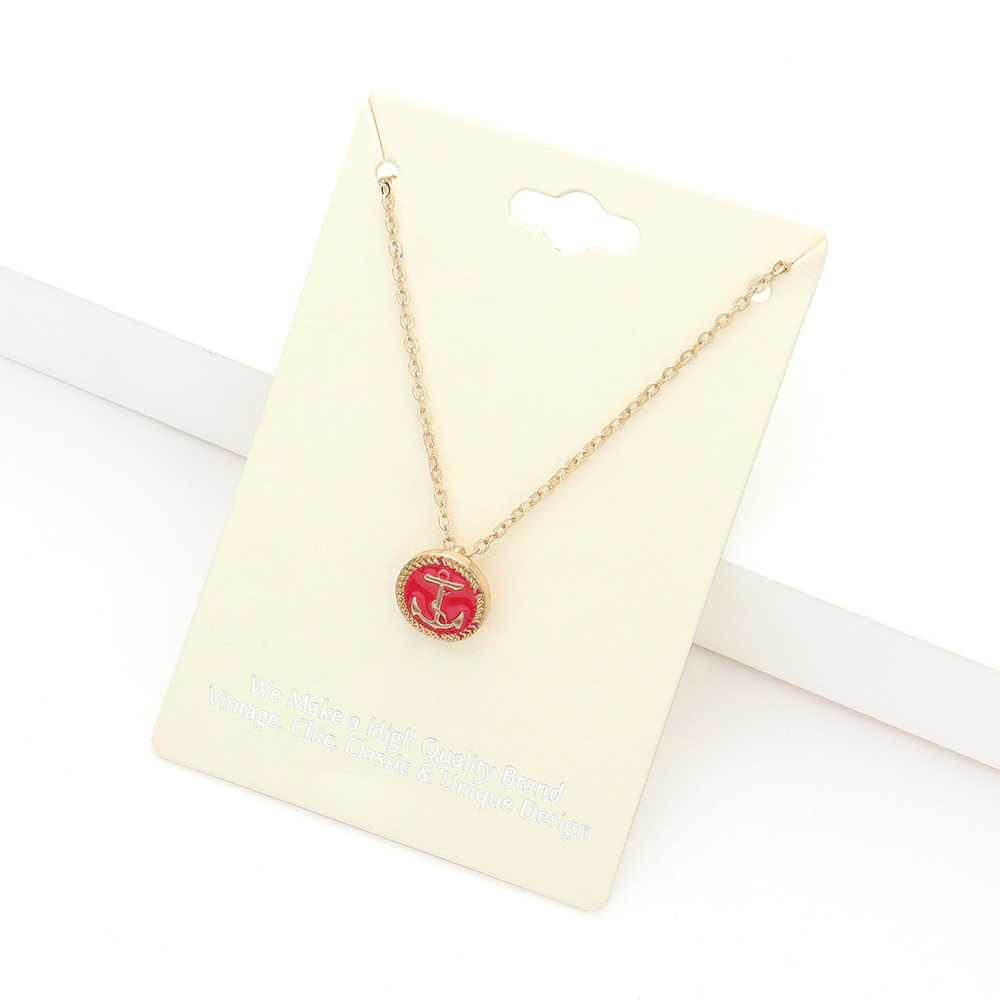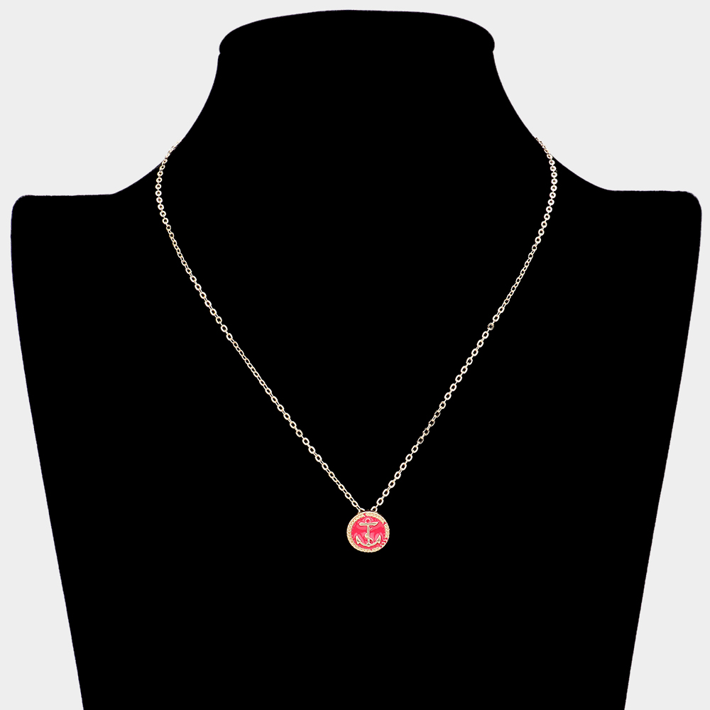 Lacquered Enamel Anchor Pendant Necklace