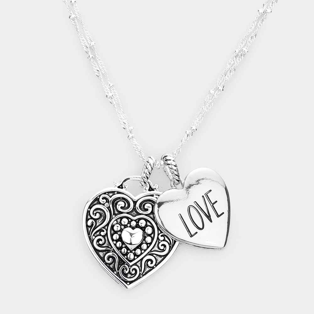 Stainless Steel CZ Stone Paved Heart Pendant Necklace