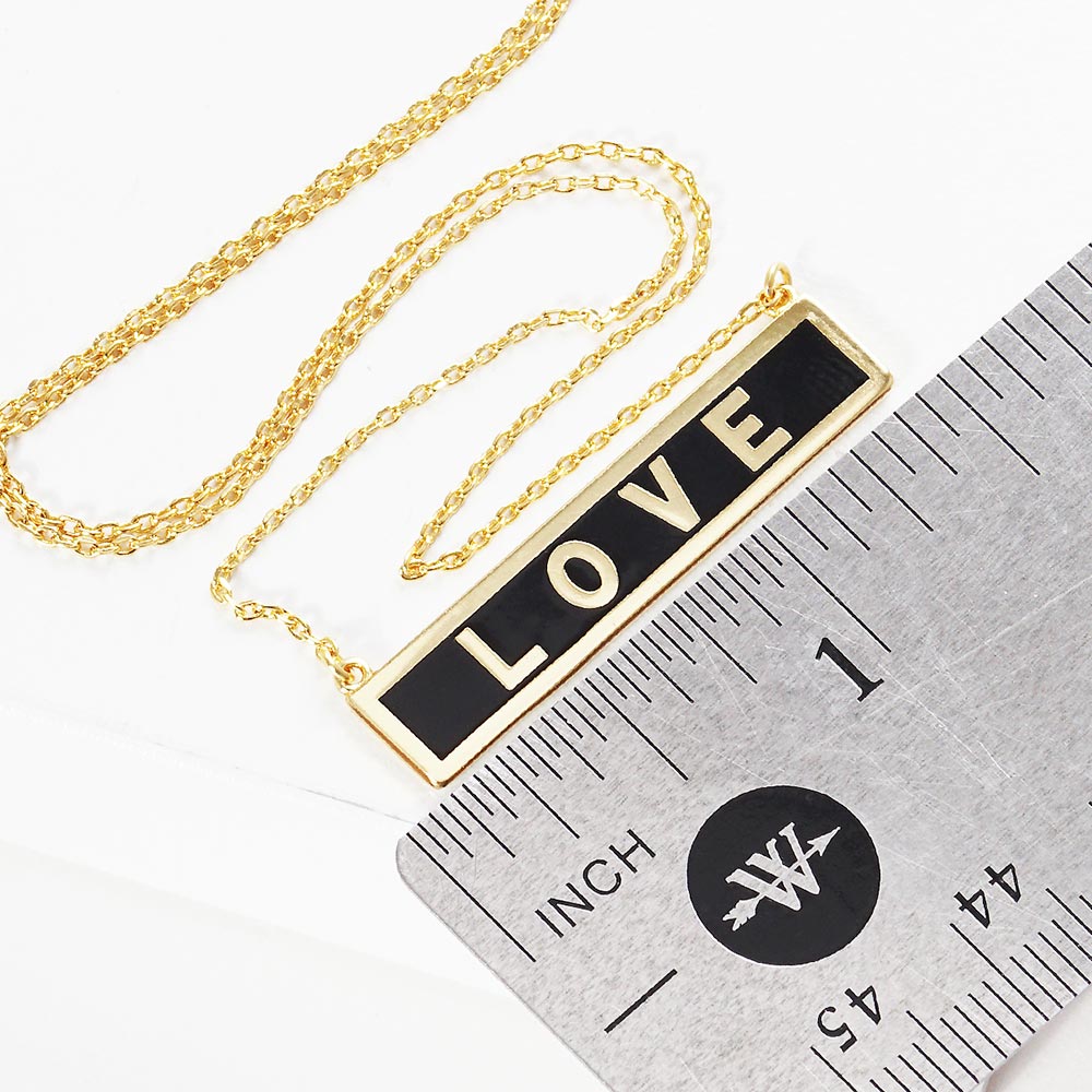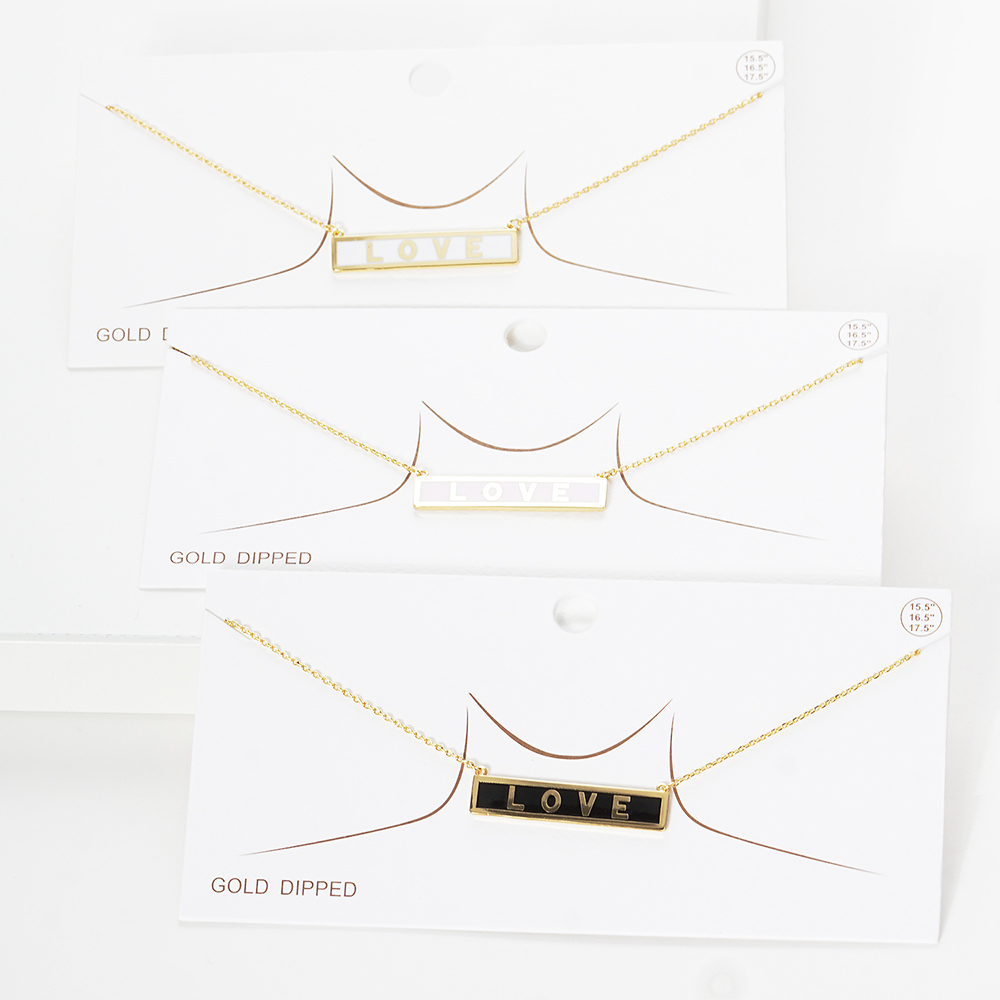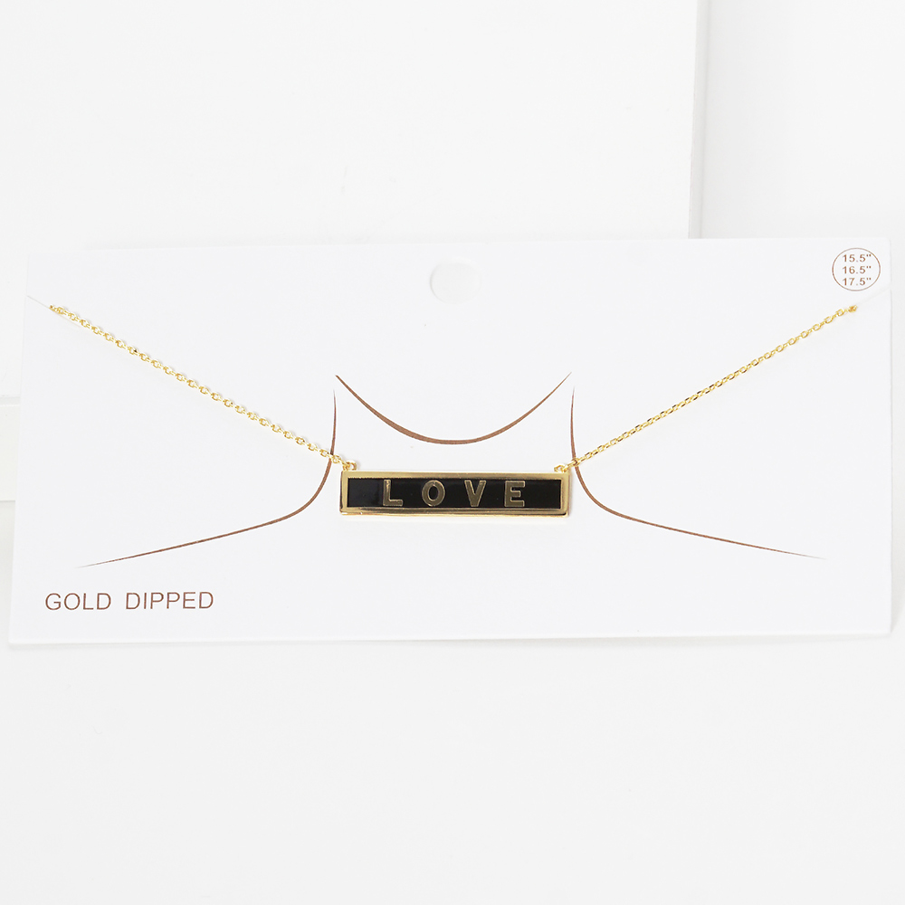 LOVE Gold Dipped Enamel Rectangle Message Pendant Necklace