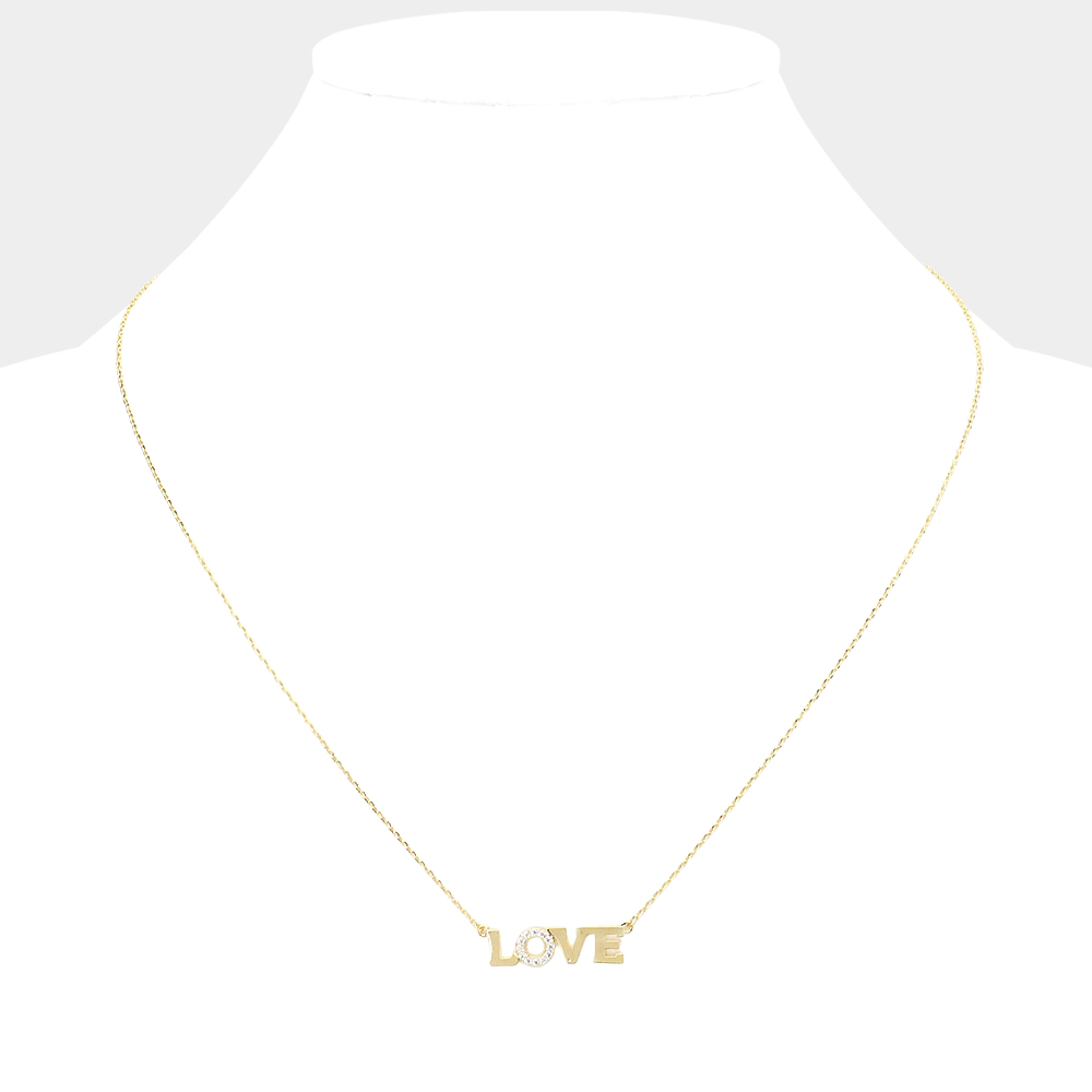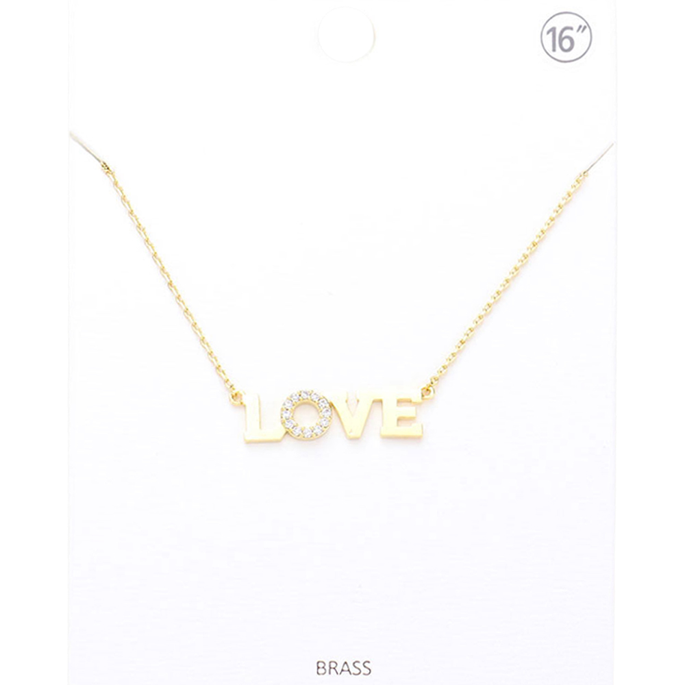 LOVE Rhinestone Embellished Brass Metal Message Pendant Necklace