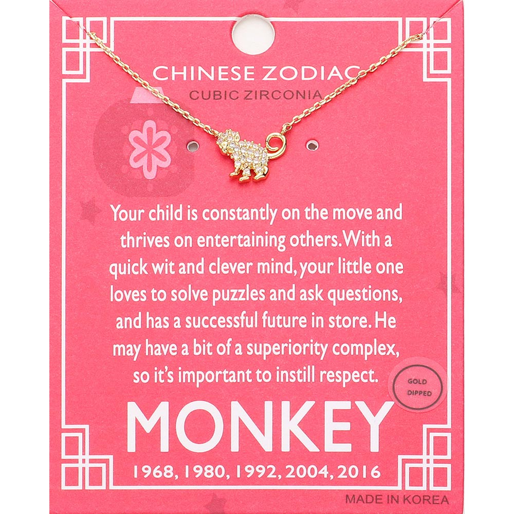 Lunar 12 Zodiac Gold Dipped CZ Monkey Pendant Necklace