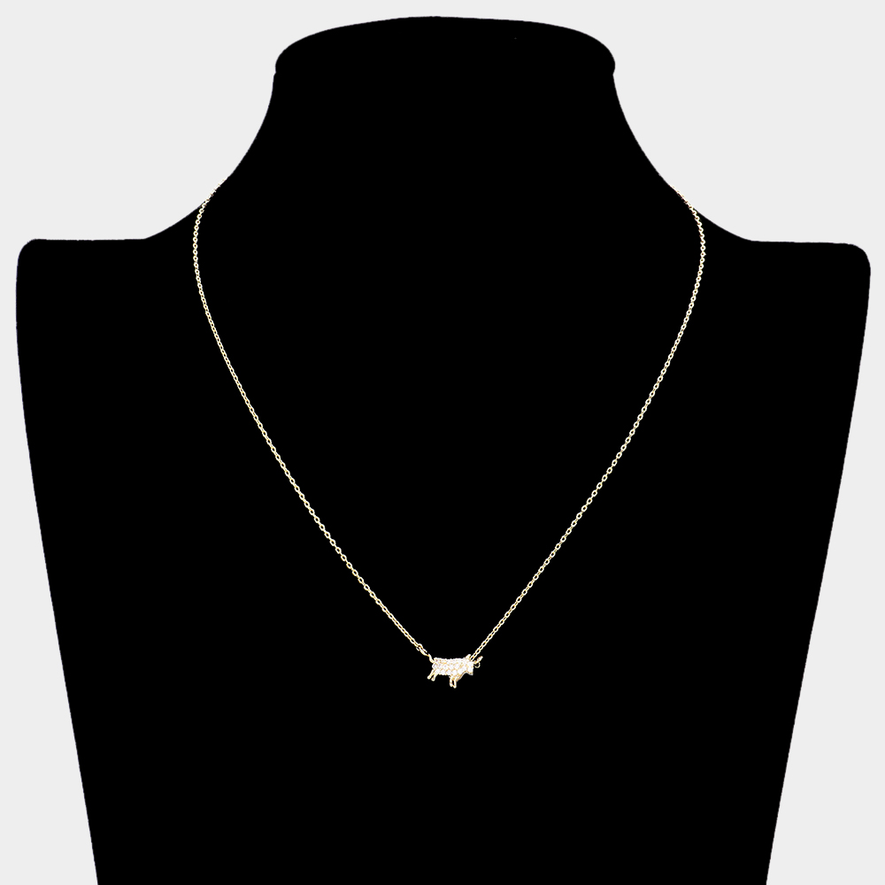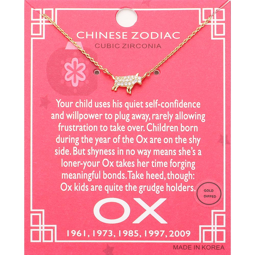 Lunar 12 Zodiac Gold Dipped CZ Ox Pendant Necklace