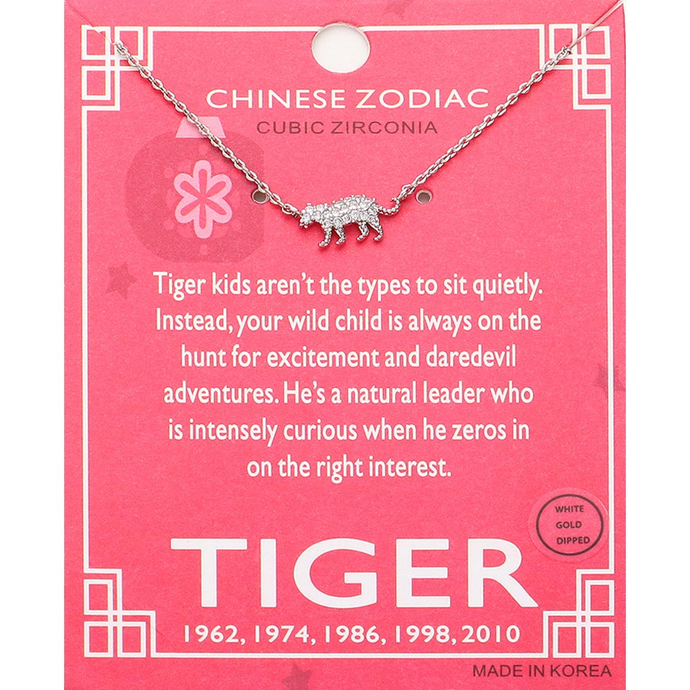 Lunar 12 Zodiac White Gold Dipped CZ Tiger Pendant Necklace