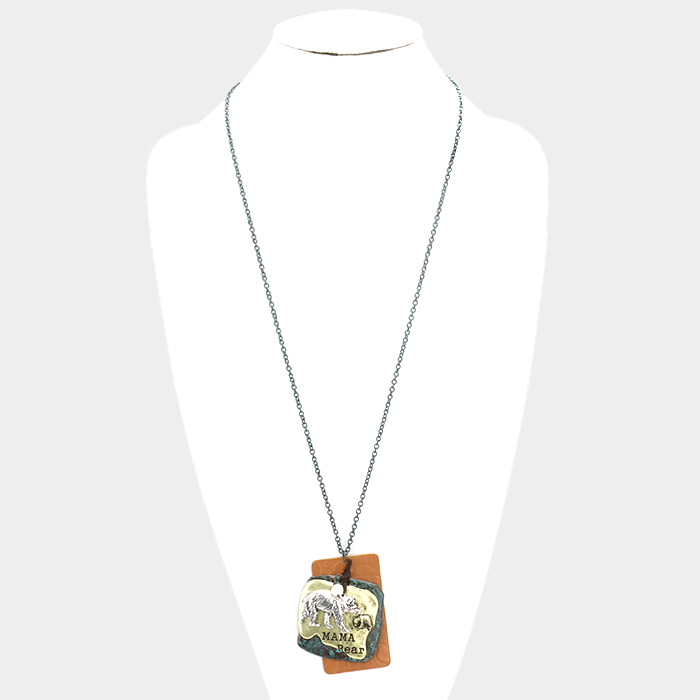 "Mama Bear" Metal Polar Bear Pearl Charm Pendant Necklace
