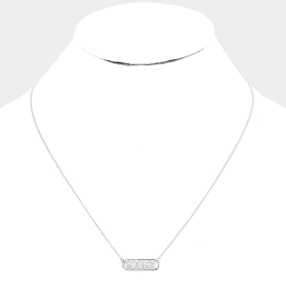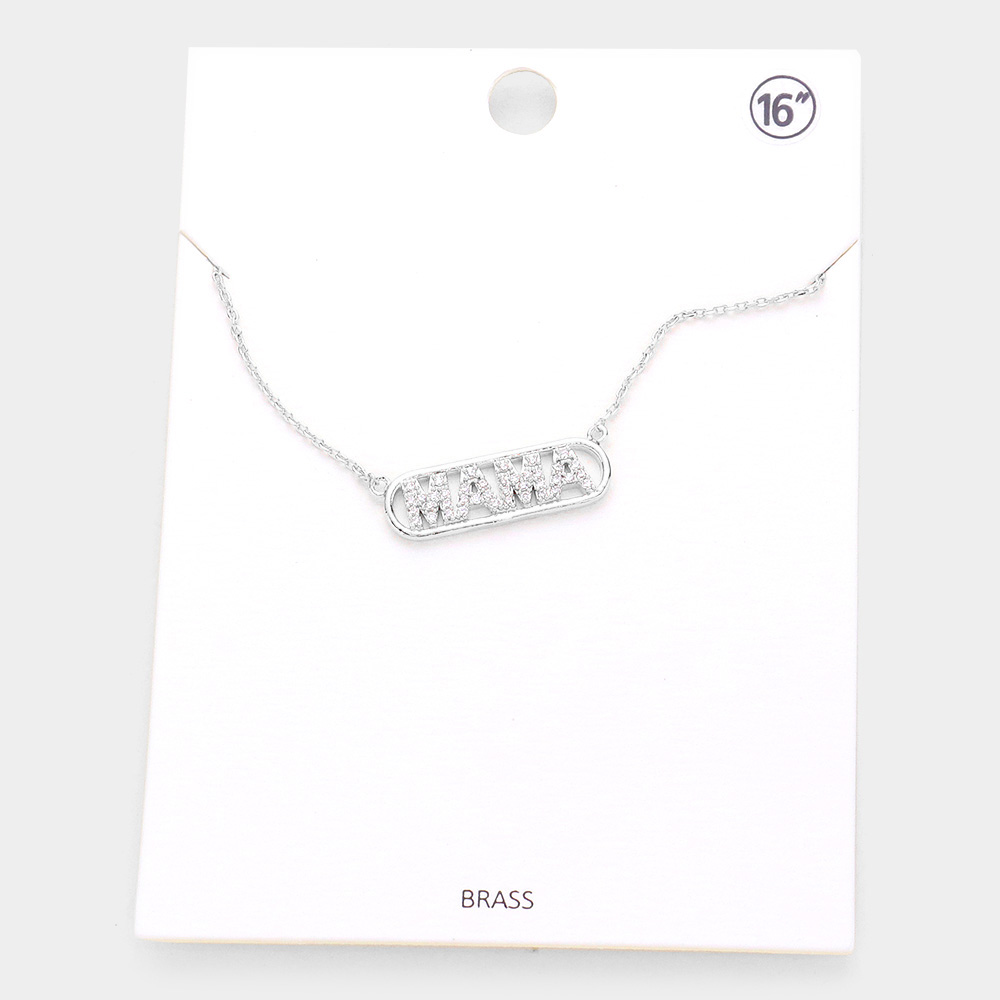 White Gold Dipped CZ Mama Metal Message Pendant Necklace
