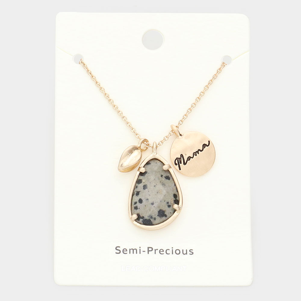 Mama Metal Disc Irregular Teardrop Semi Precious Pendant Necklace