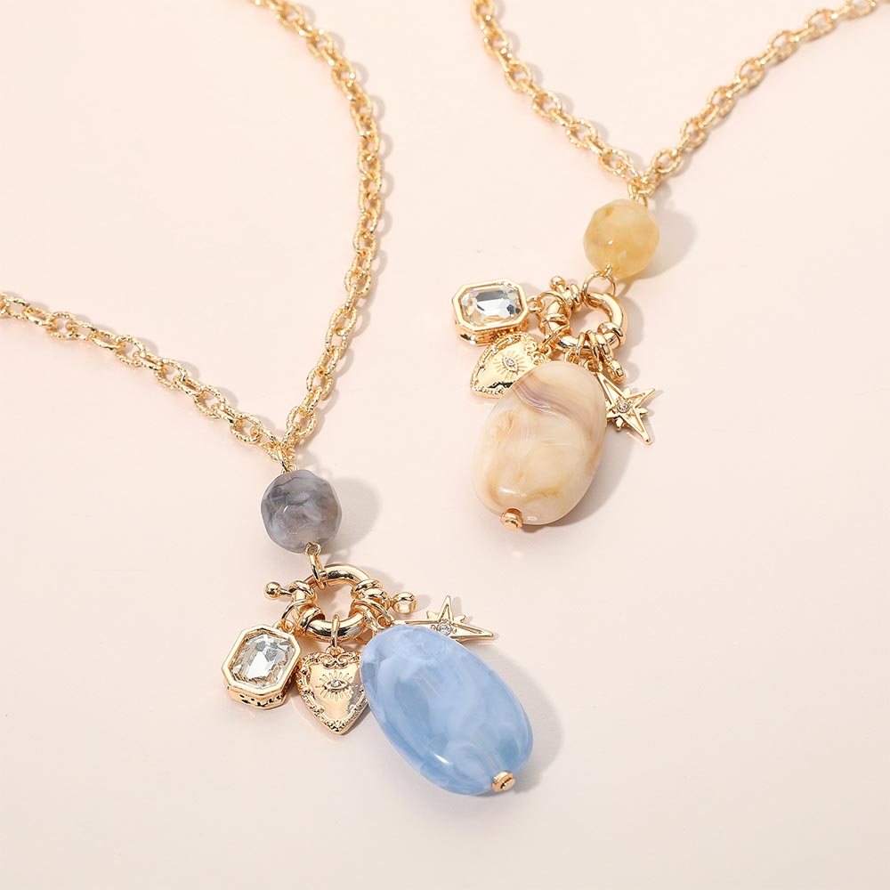 Marbled Resin Stone Evil Eye Heart Star Charm Pendant Necklace