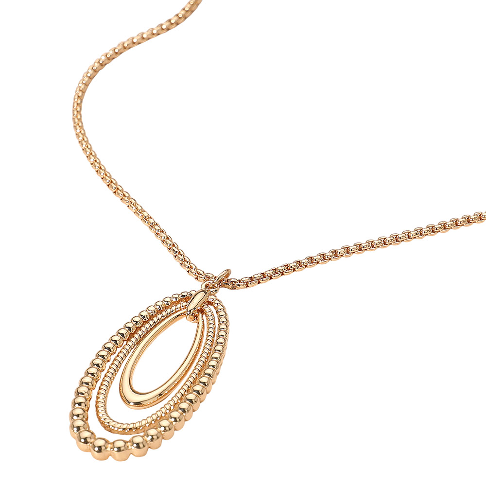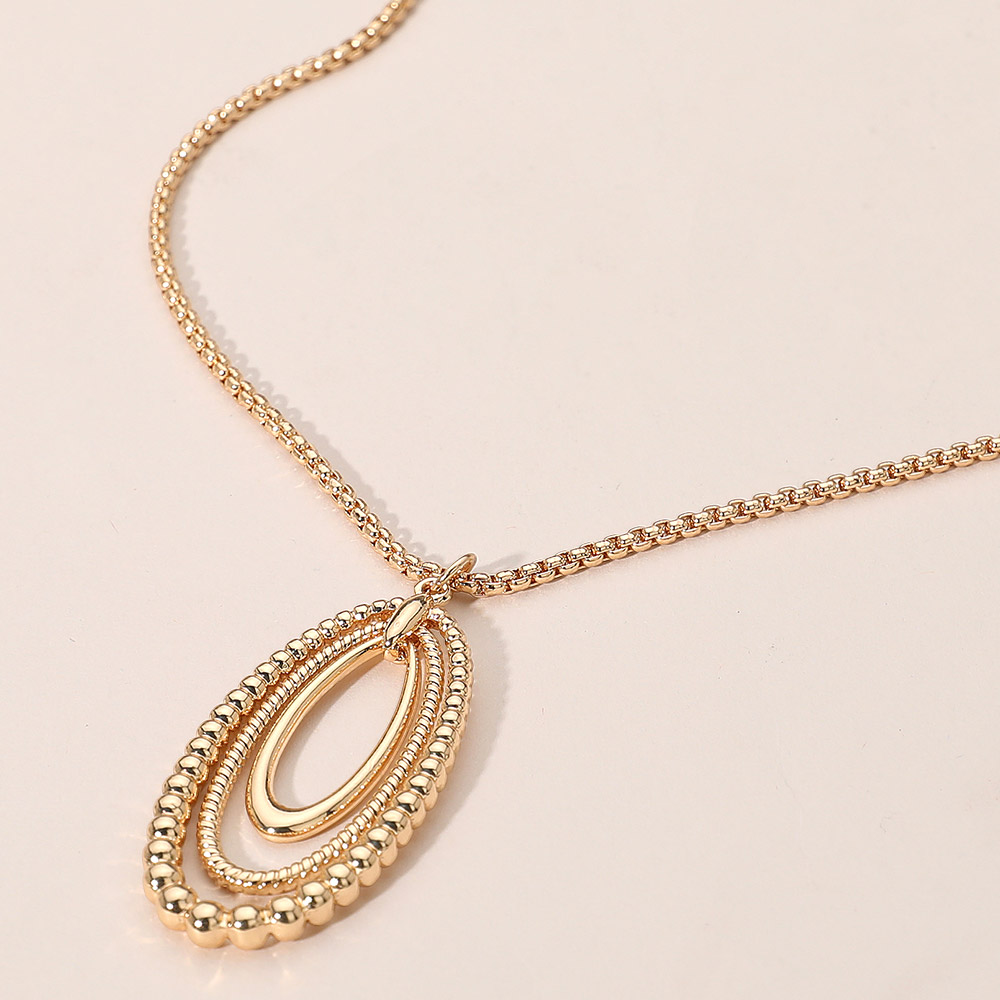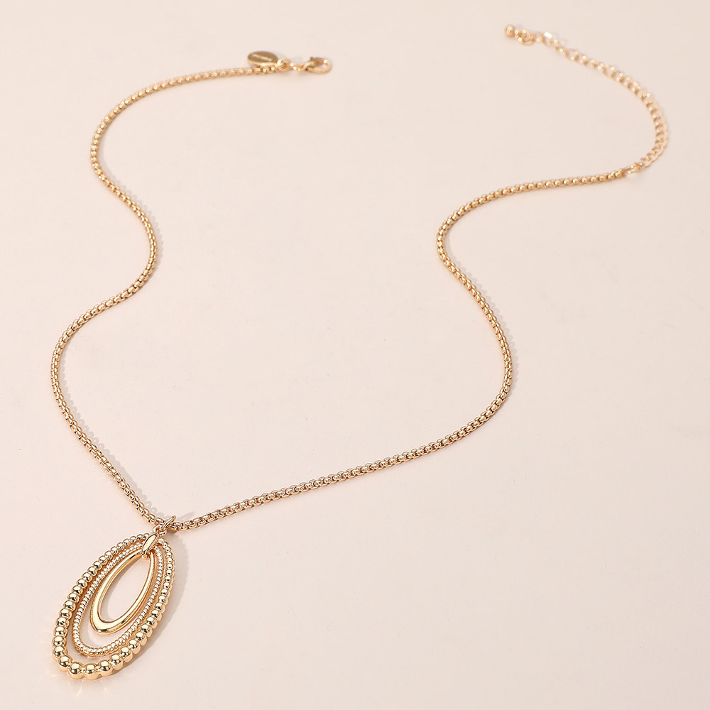 • Chic layered oval pendant necklace featuring smooth and beaded-edge loops for a refined dimensional look. A versatile statement accessory that pairs effortlessly with both casual and dressy outfits, adding timeless elegance and modern charm to any style.