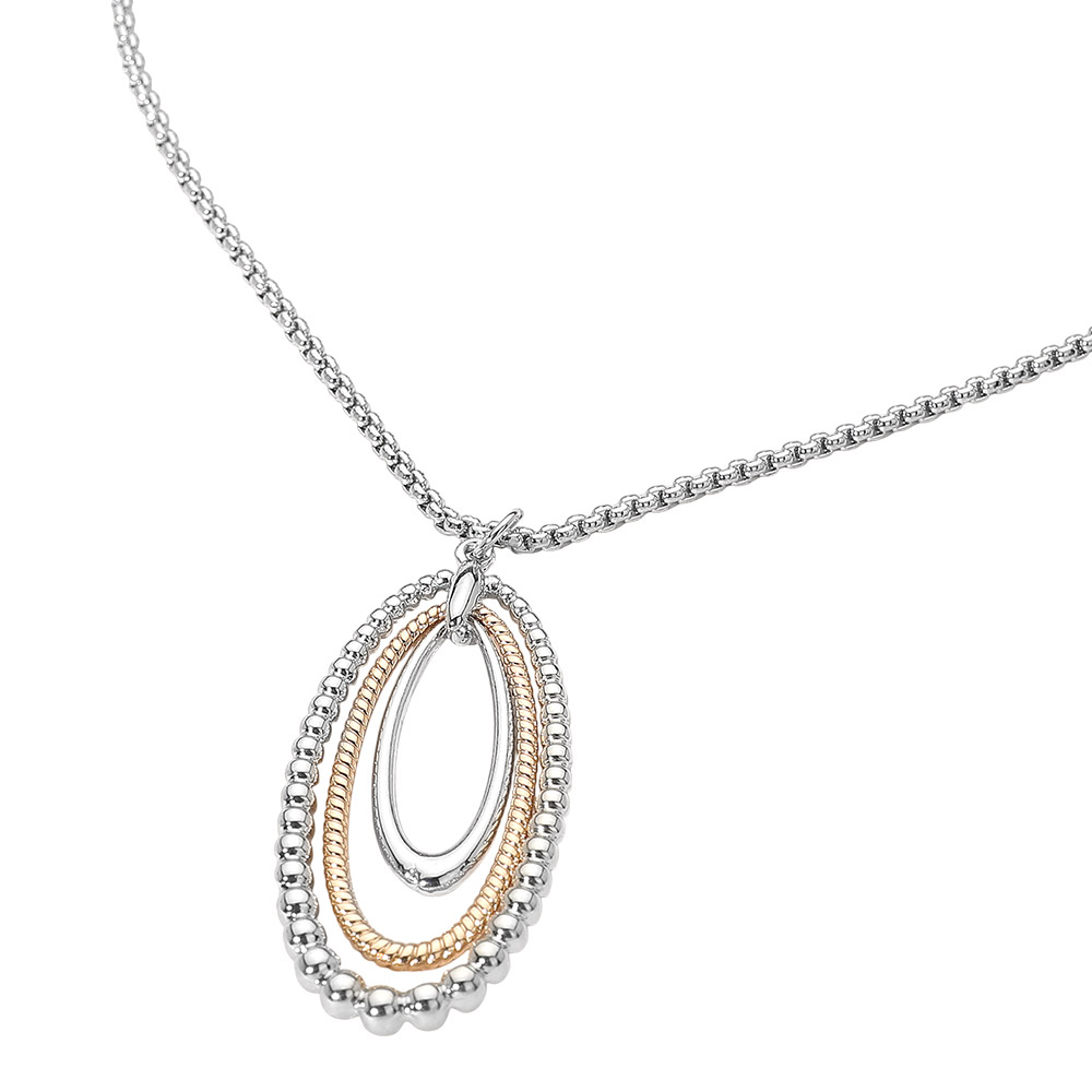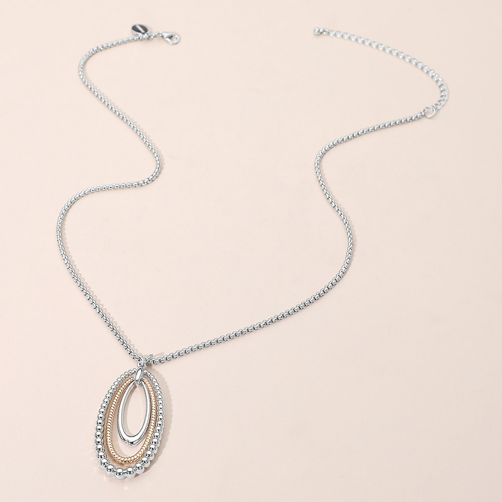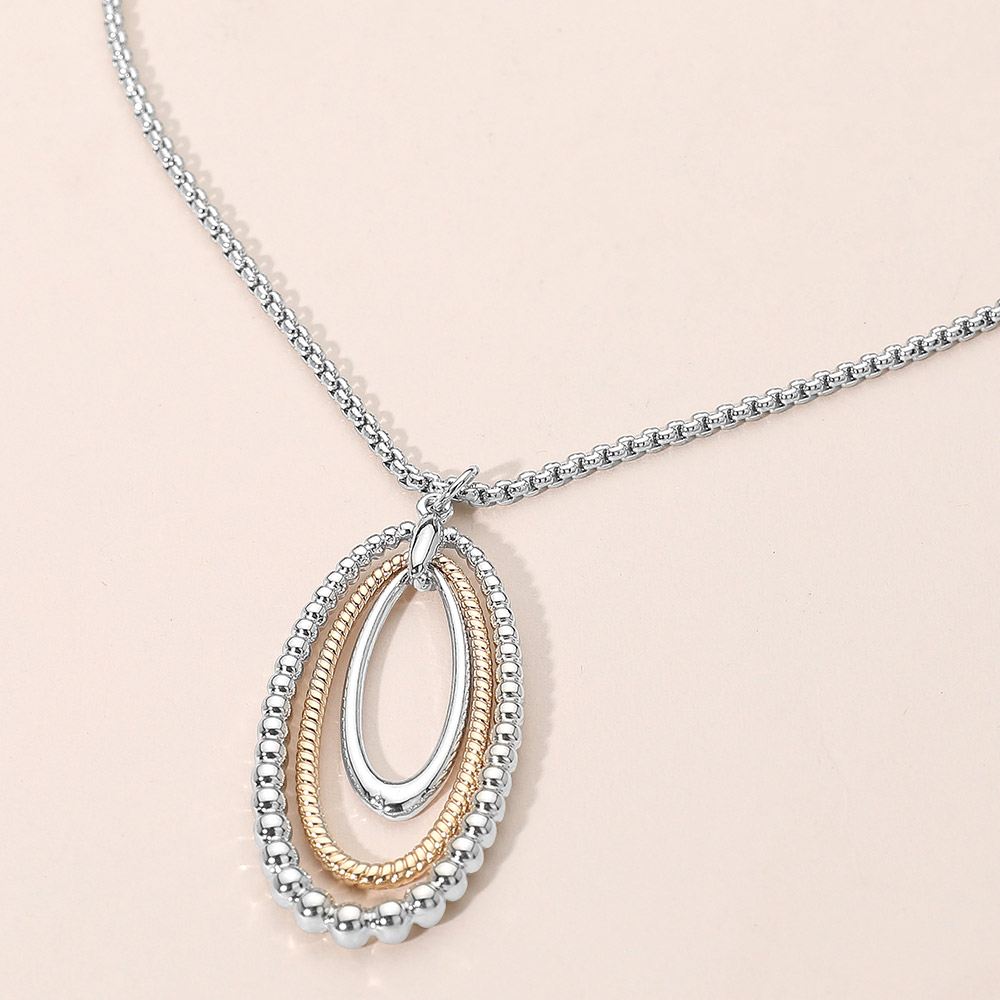 • Chic layered oval pendant necklace featuring smooth and beaded-edge loops for a refined dimensional look. A versatile statement accessory that pairs effortlessly with both casual and dressy outfits, adding timeless elegance and modern charm to any style.