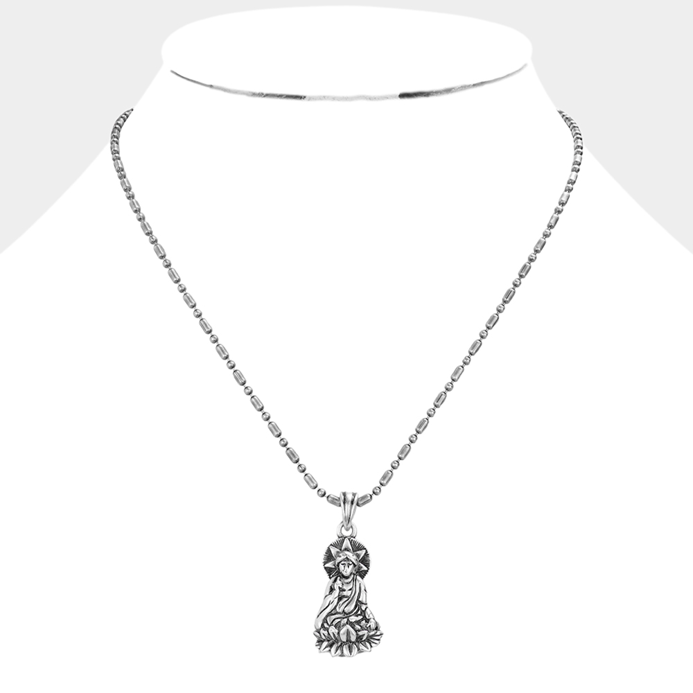 Double Layered Metal Cross Jesus Disc Drop Chain Tassel Necklace