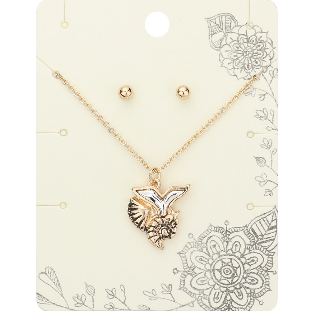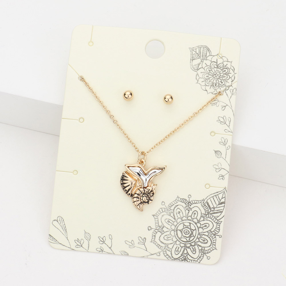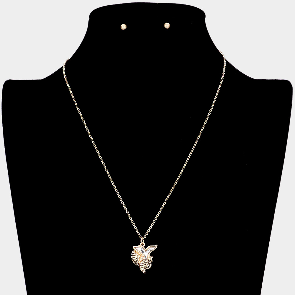 Metal Conch Shell Mermaid Tail Pendant Necklace
