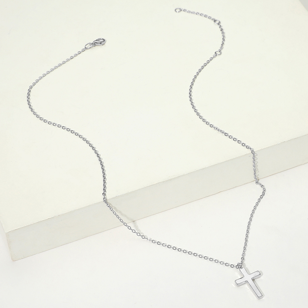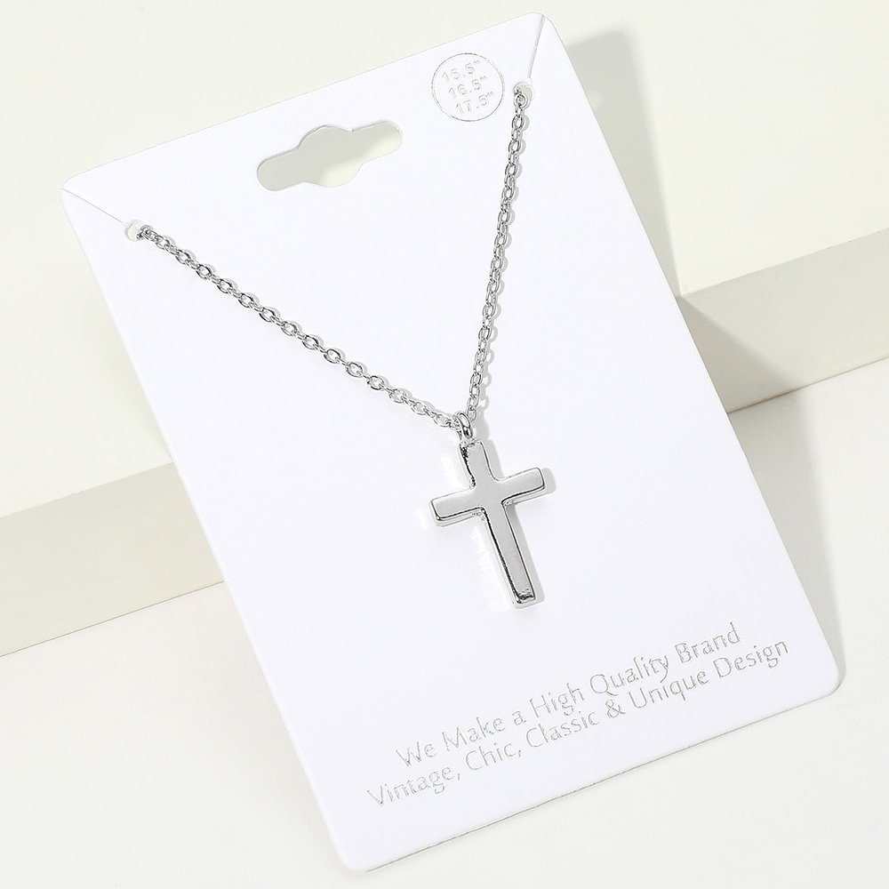 Details • Necklace Size : 15.5" + 2" L • Pendant Size : 0.5" X 0.8" • Show timeless faith and style with this classic cross pendant necklace, crafted in a sleek minimalist design. A versatile and meaningful accessory that complements casual or formal looks, making it ideal for daily wear, spiritual expression, or as a thoughtful gift. • Lead and Nickel Compliant