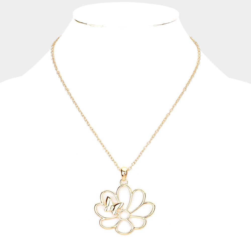 Butterfly Flower Enamel Detailed Heart Pendant Necklace