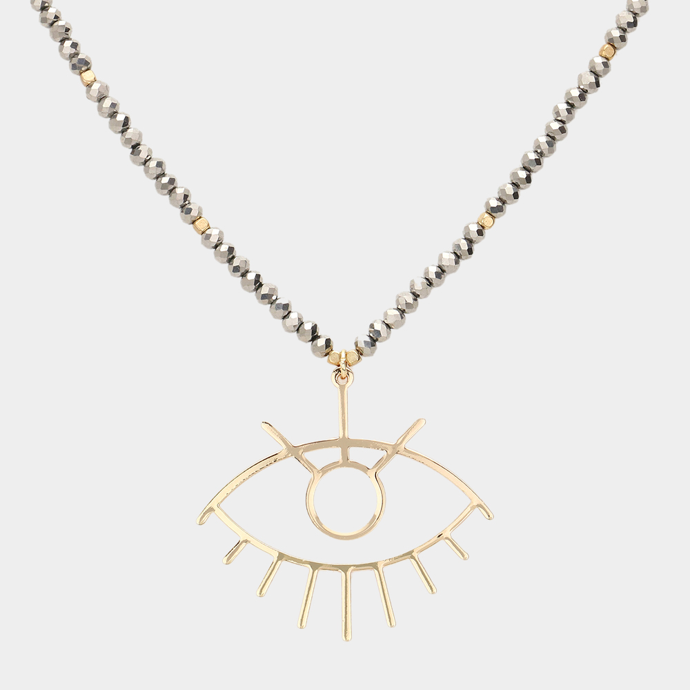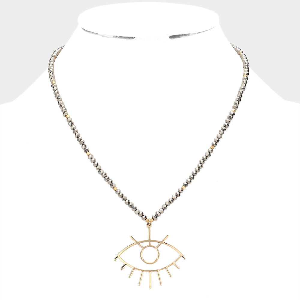 Metal Evil Eye Pendant Faceted Beaded Necklace