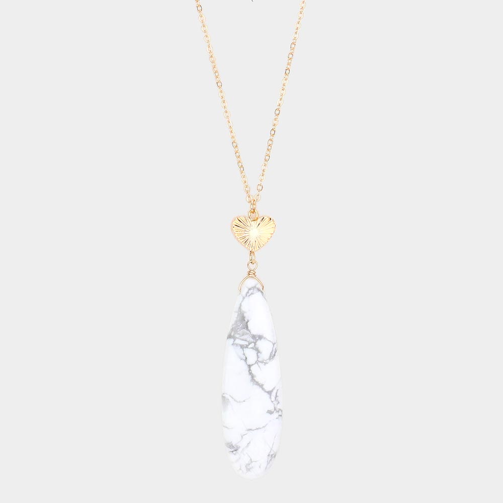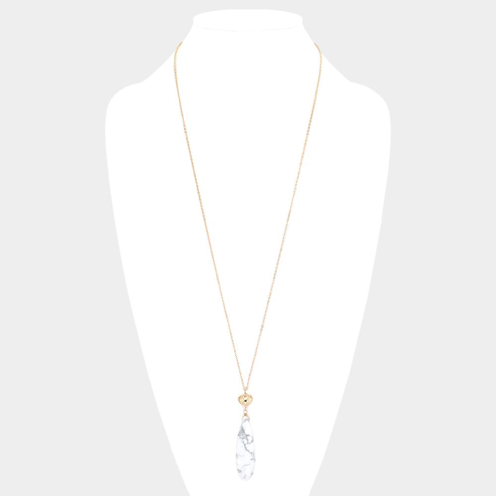 Metal Heart Teardrop Natural Stone Link Pendant Long Necklace