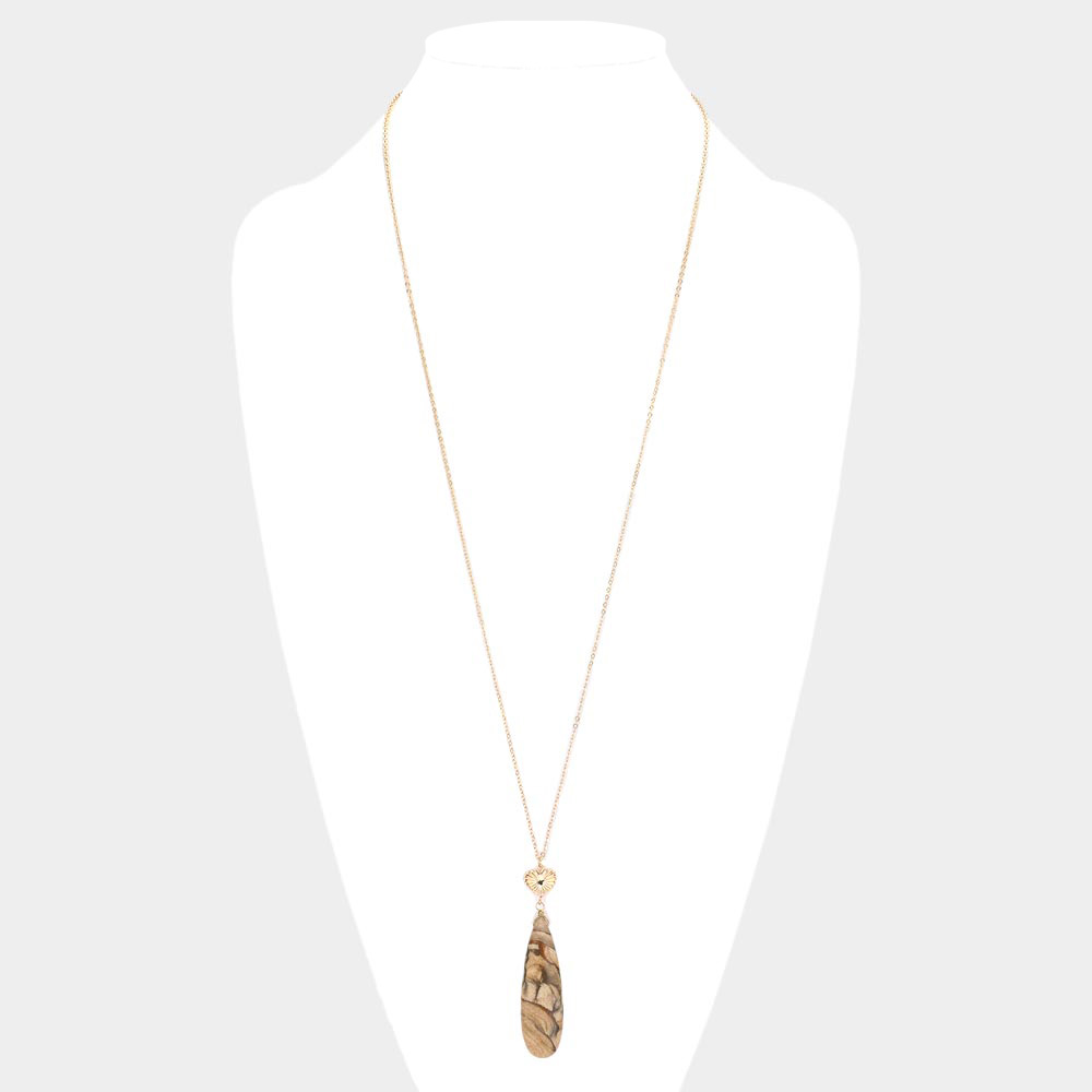 Metal Heart Teardrop Natural Stone Link Pendant Long Necklace