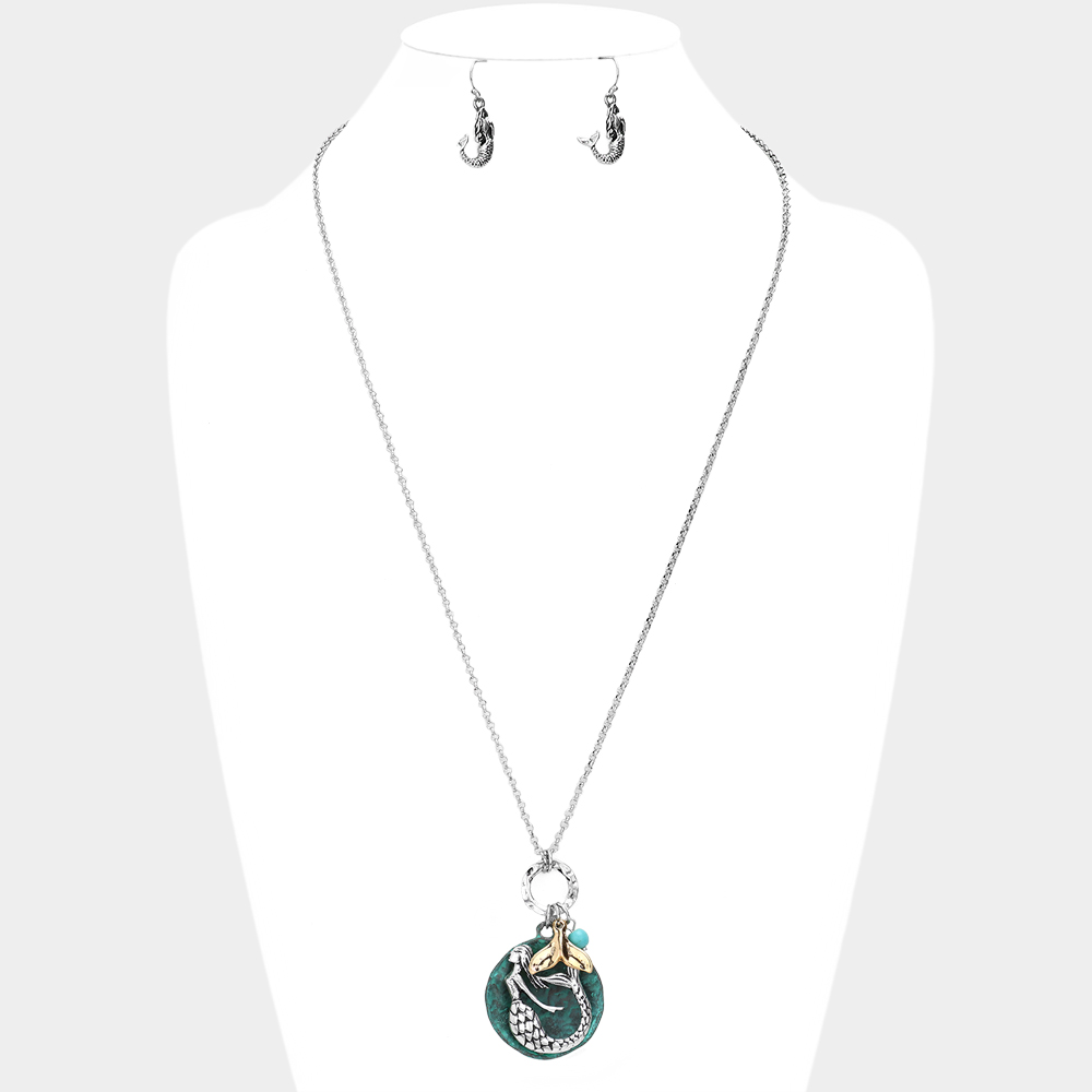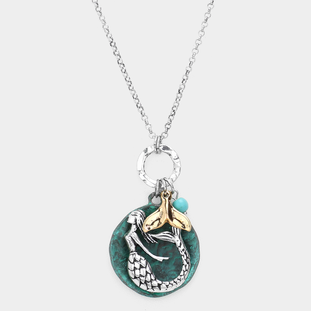 Metal Mermaid Round Pendant Whale Tail Charm Necklace