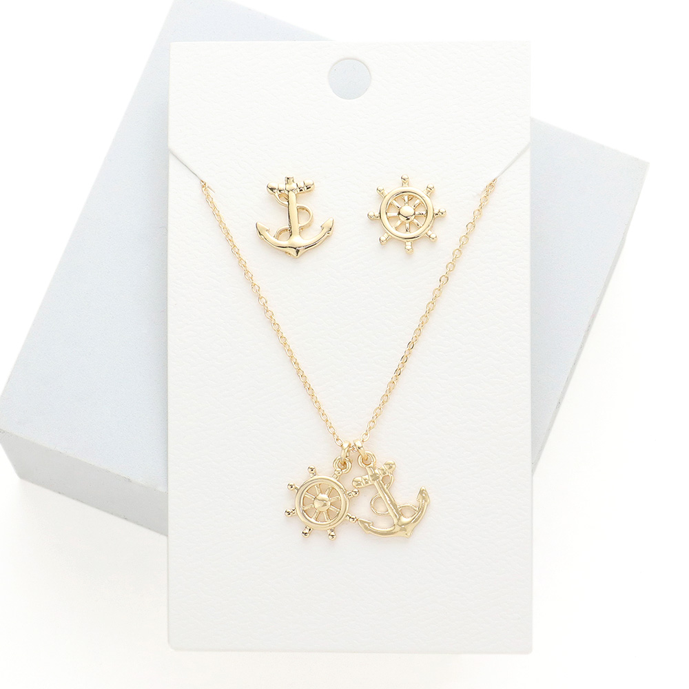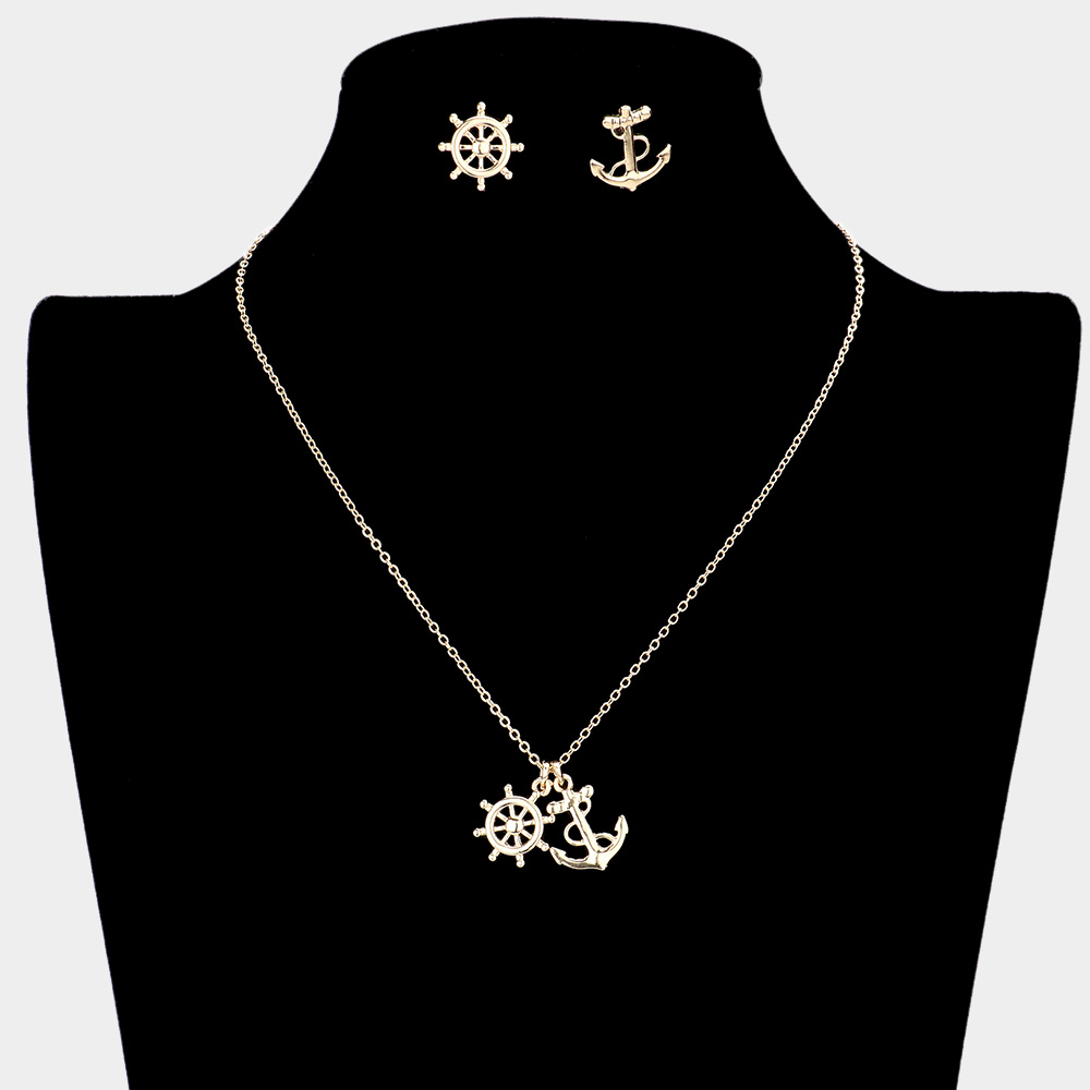 Metal Ship Wheel Anchor Pendant Necklace