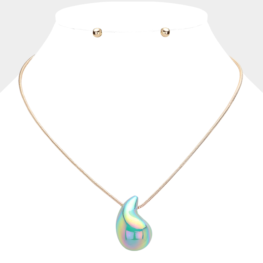 Metallic Teardrop Pendant Necklace