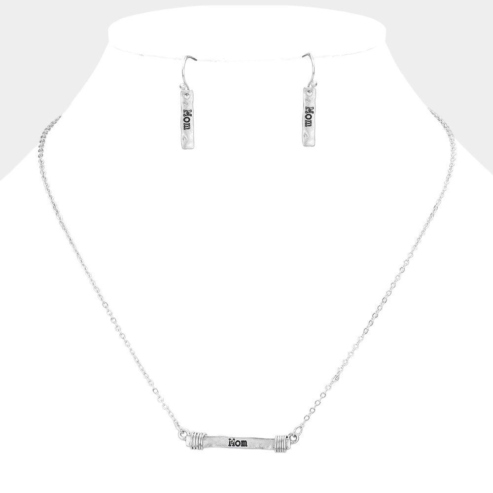 "MOM" Irregular Horizontal Metal Bar Pendant Necklace