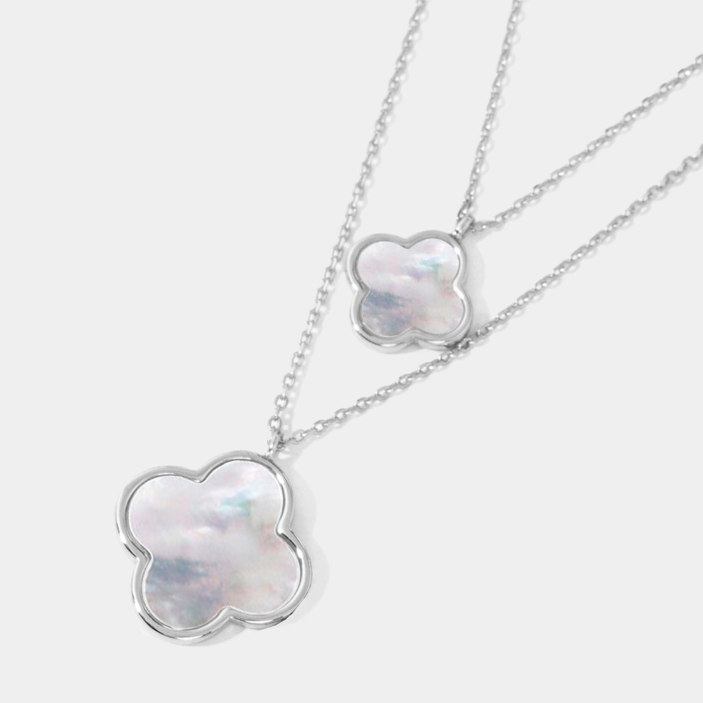 Mother of Pearl Quatrefoil Pendant Double Layered Necklace