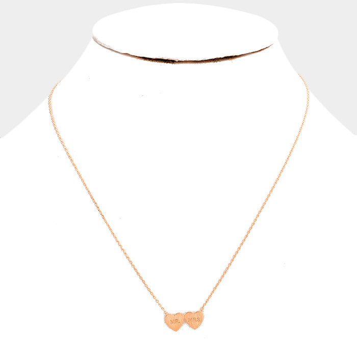Mr Mrs _ Metal Double Heart Pendant Necklace