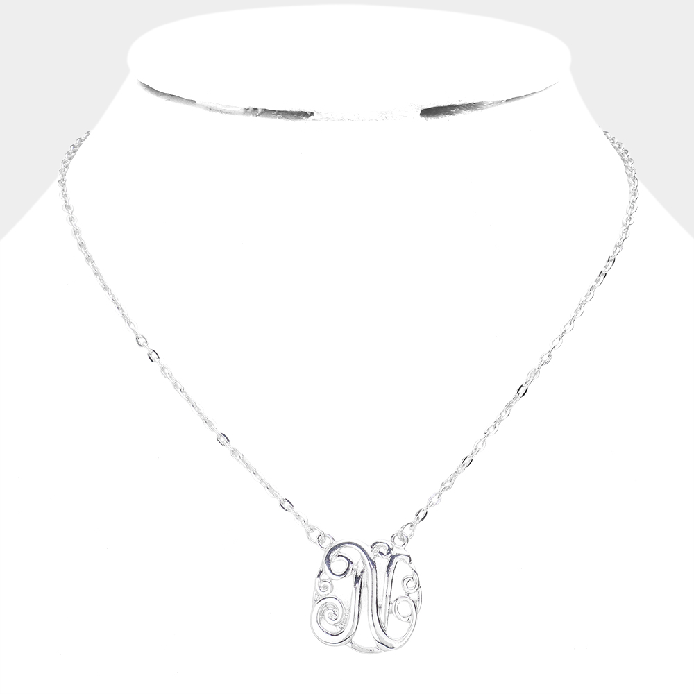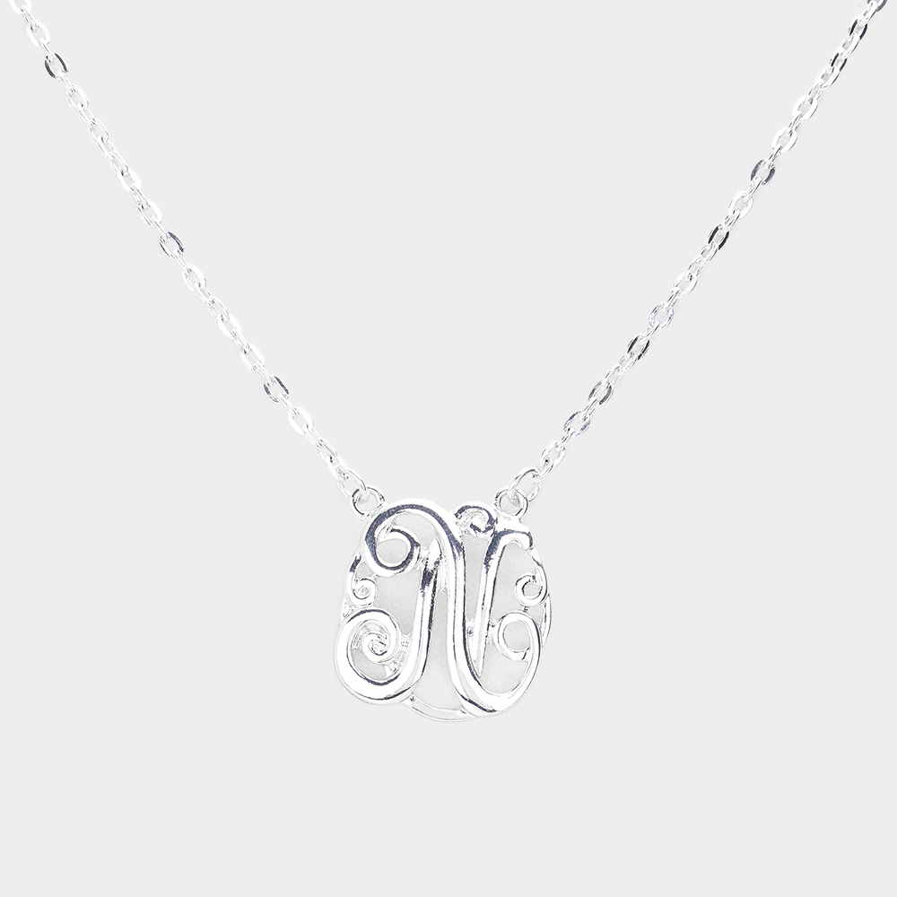 N - Circle Script Initial Monogram Pendant Necklace