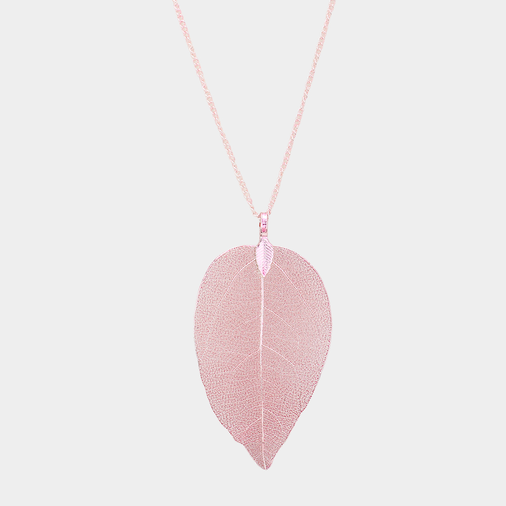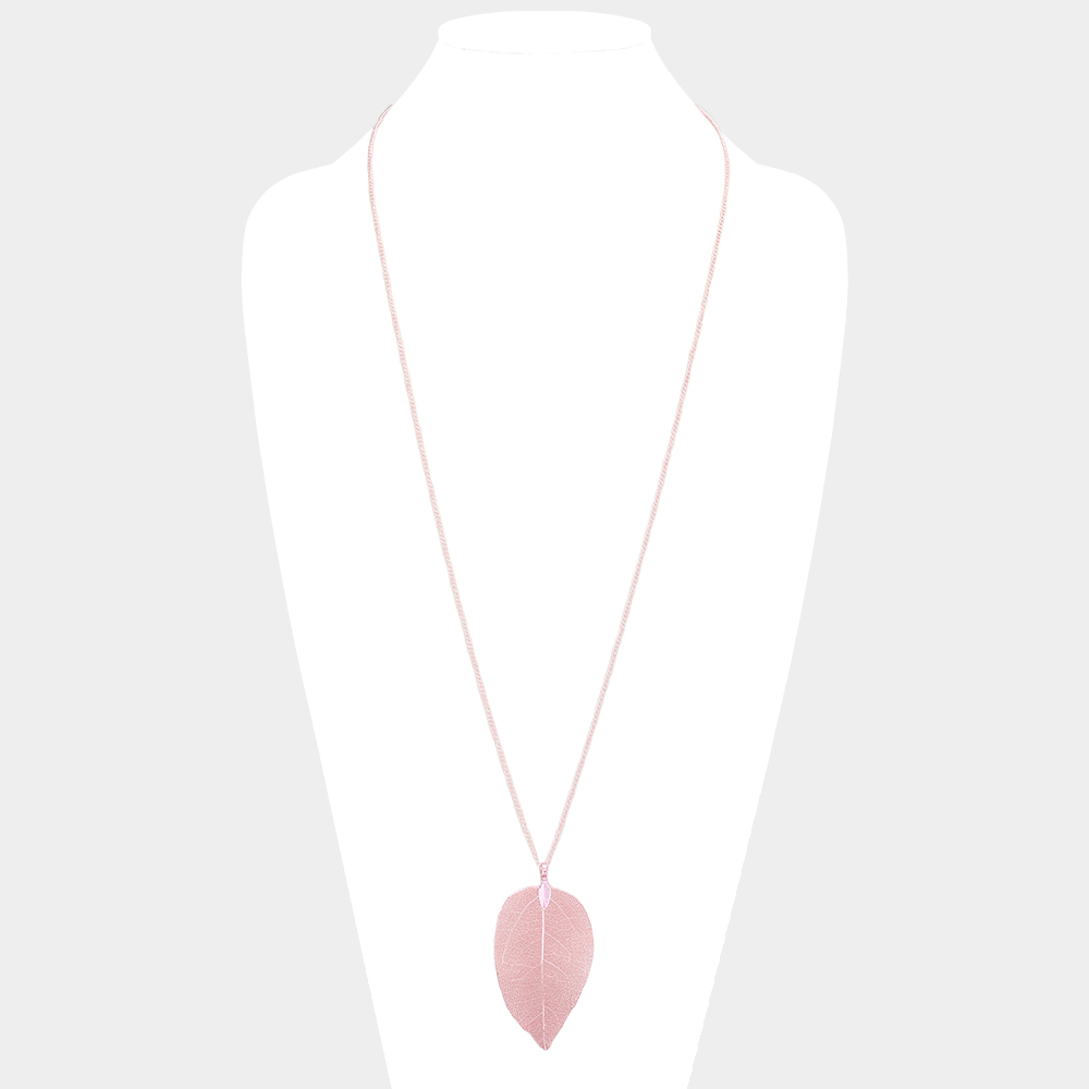 Natural Dipped Filigree Leaf Pendant Long Necklace