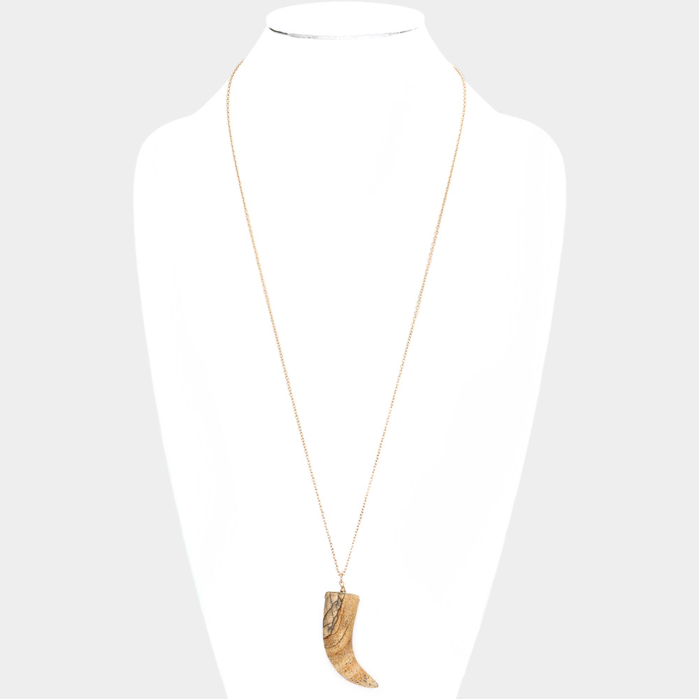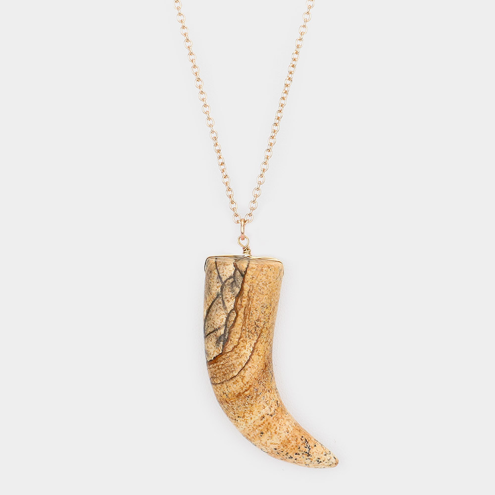 Natural Stone Horn Pendant Long Necklace