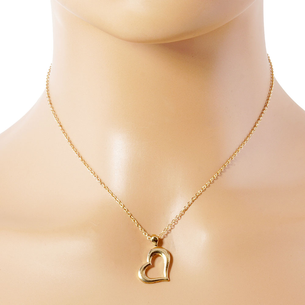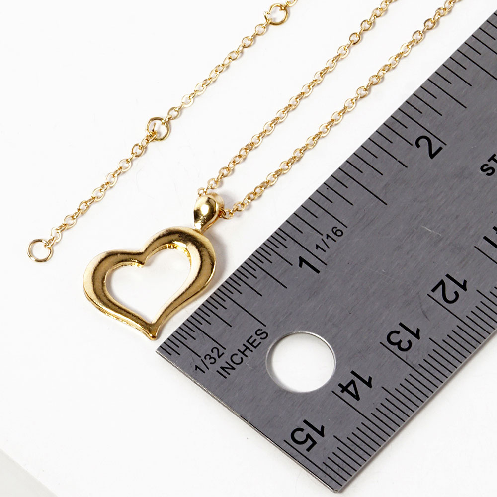 Details • Necklace Size : 15.5" + 2" L • Pendant Size : 0.6" X 0.8" • Elegant open heart pendant necklace featuring a smooth hollow heart charm on a delicate chain. A simple, meaningful accessory ideal for everyday wear or gifting, adding a touch of timeless style to any outfit. • Lead and Nickel Compliant