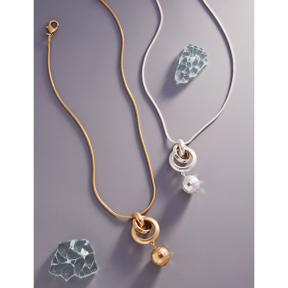 Open Metal Circle Ball Link Pendant Necklace