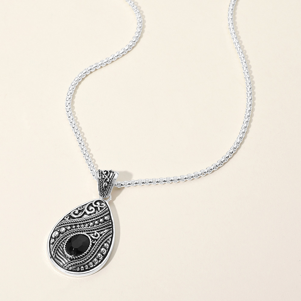 Oval Stone Pointed Antique Metal Teardrop Pendant Necklace