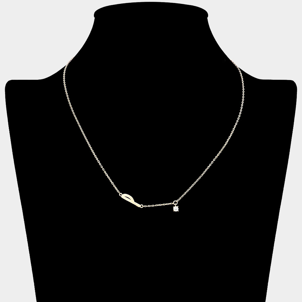 L Brass Metal Cubic Zirconia Initial Monogram Pendant Necklace