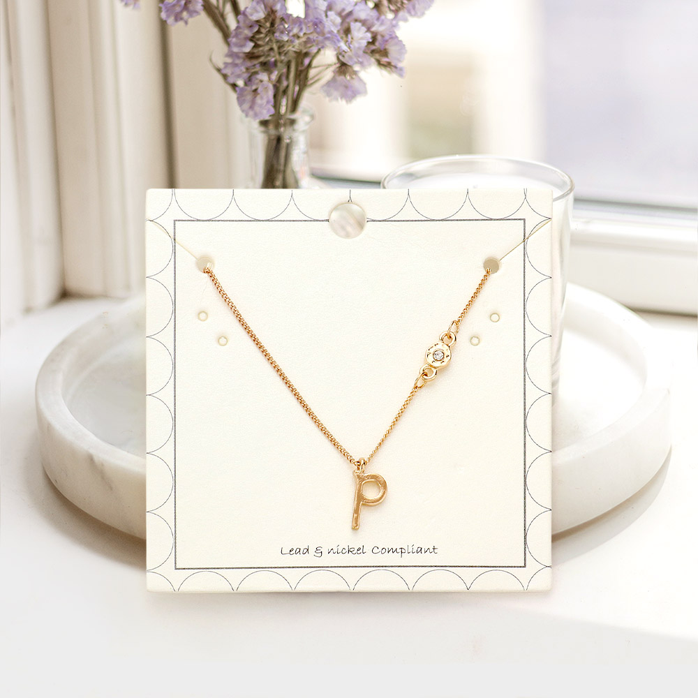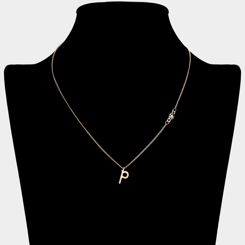 P - Small Letter Initial Monogram Pendant Necklace with Crystal