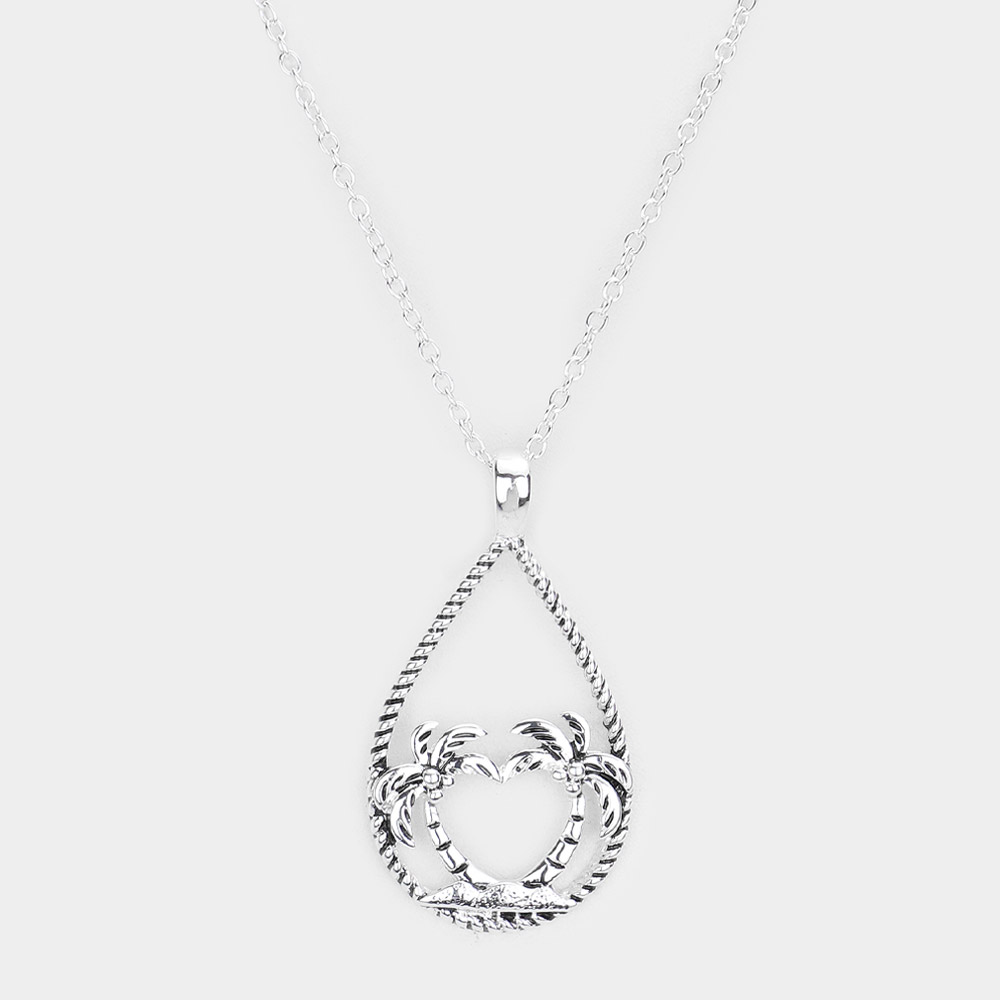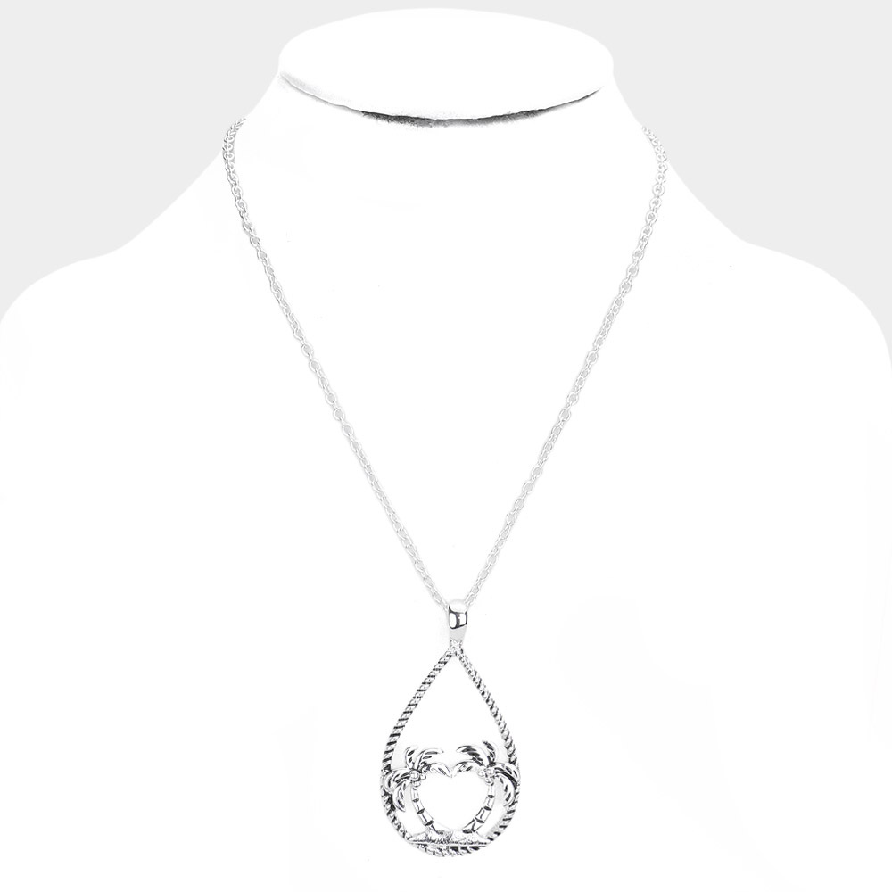 Palm Tree Accented Open Teardrop Pendant Necklace