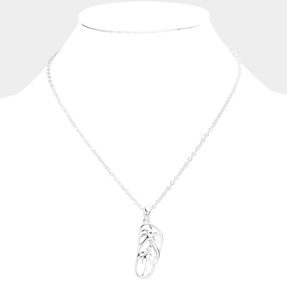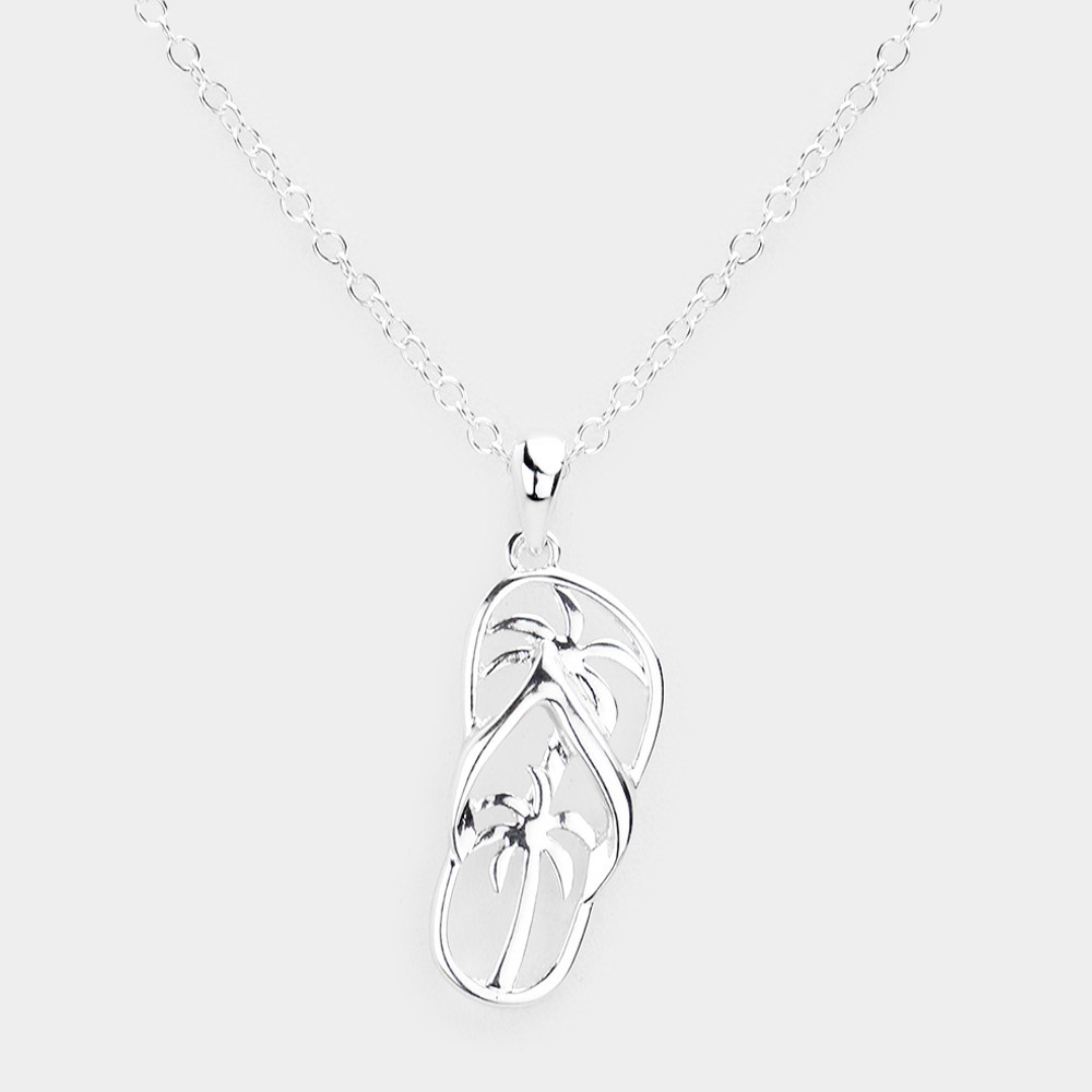 Palm Tree Detailed Metal Flip Flop Pendant Necklace