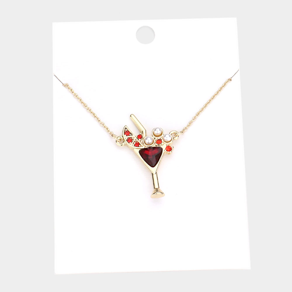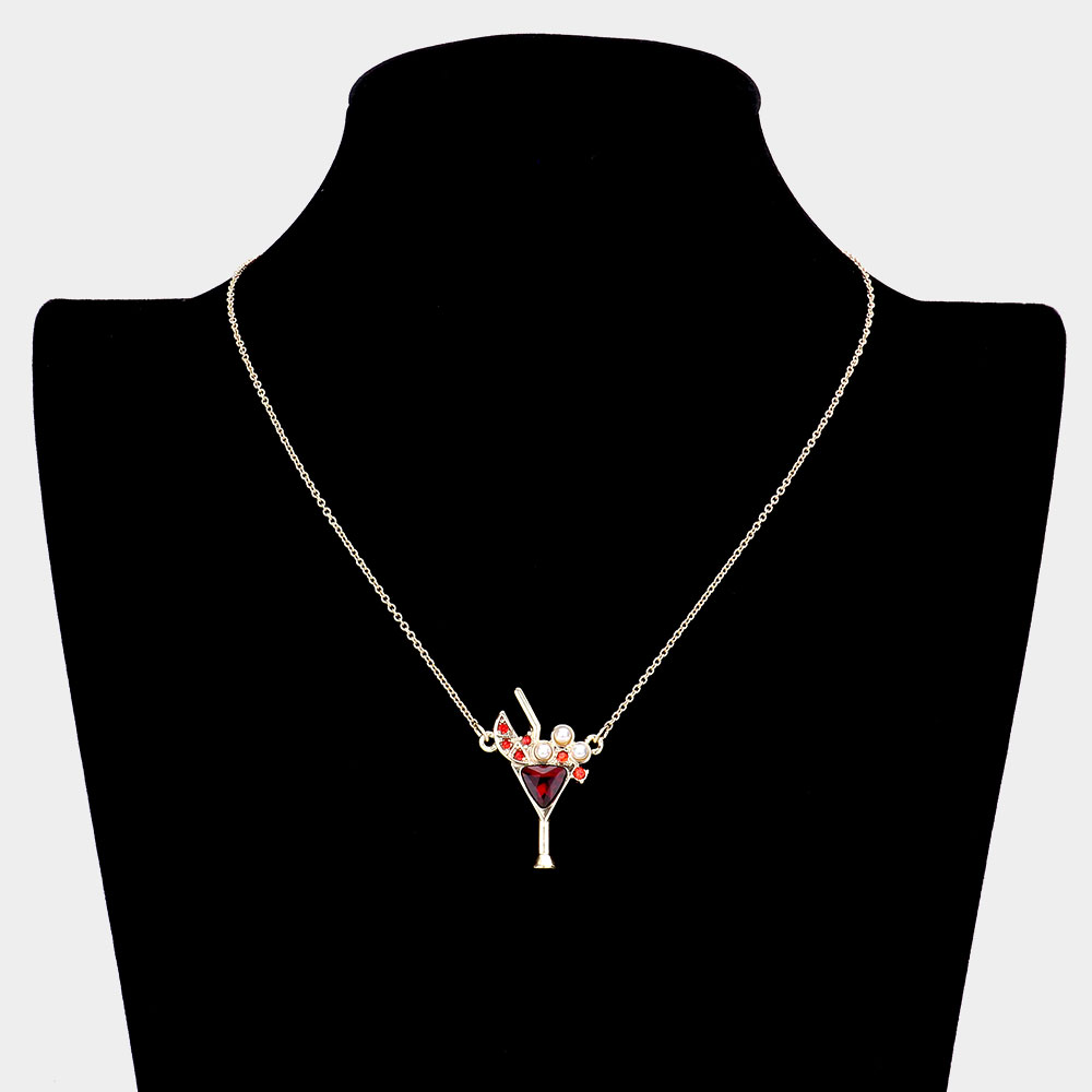 Details • Necklace Size : 16" + 3" L • Pendant Size : 0.75" X 1.25" • Playful necklace featuring a cocktail glass pendant embellished with sparkling accents and vibrant details. Set on a delicate chain, it adds a fun and festive touch to any outfit. Perfect for parties, casual wear, or as a quirky gift for someone with a bold sense of style.